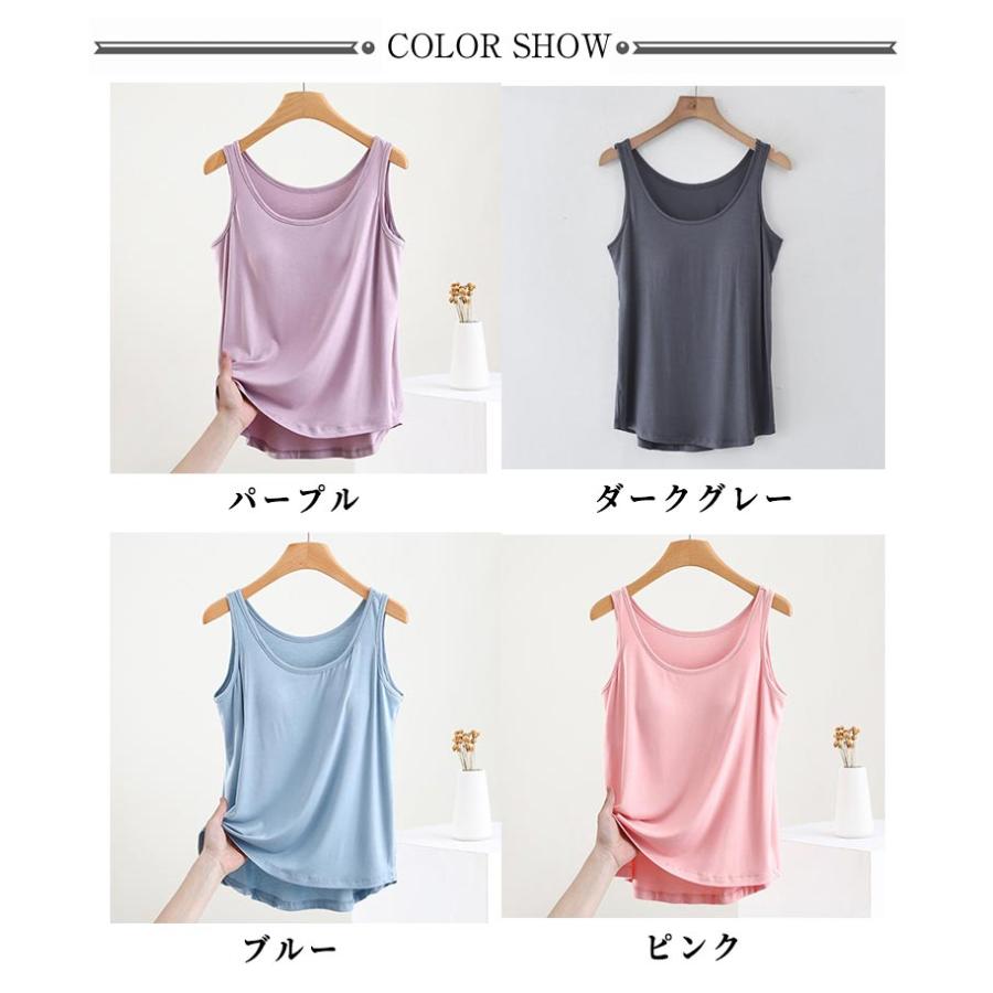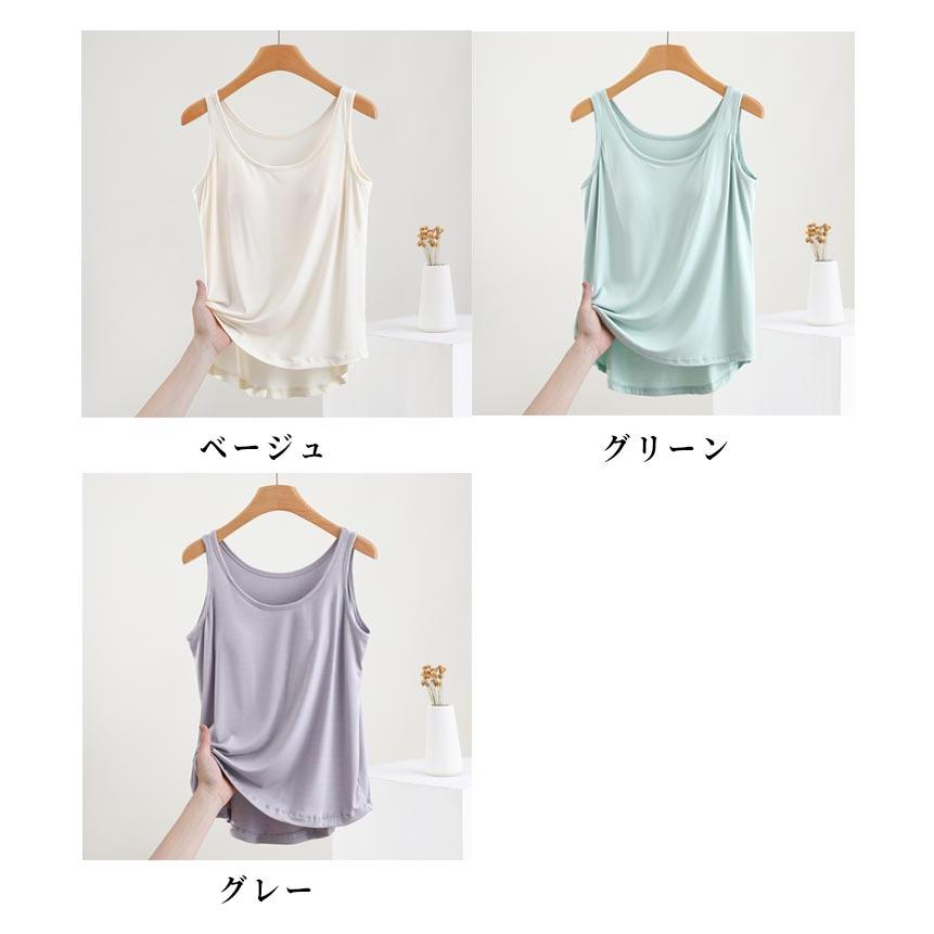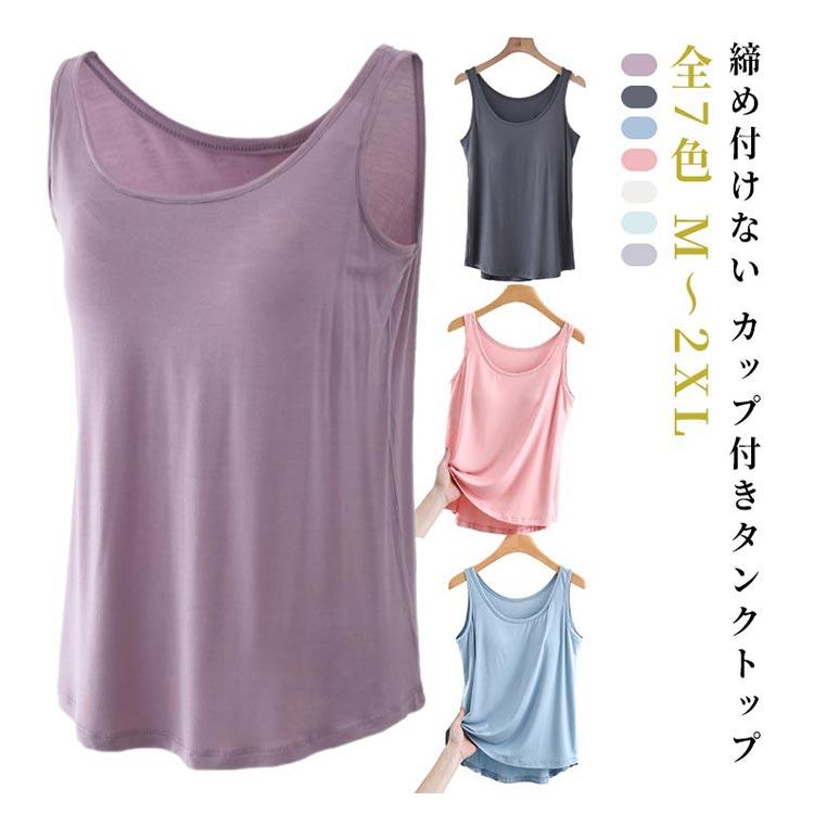 カップ付き ブラトップ 軽い インナー アンダーゴムなし ブラジャー ラウンドネック 締め付けない ノンワイヤー パッド入り タンクトップ