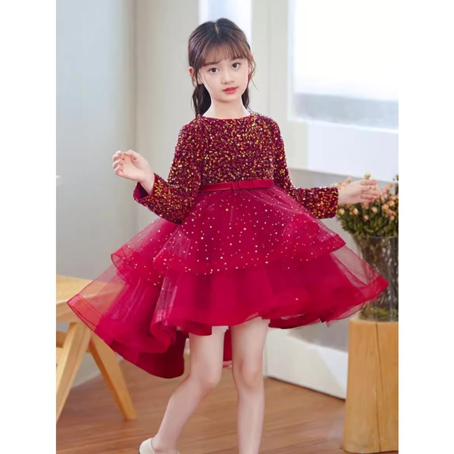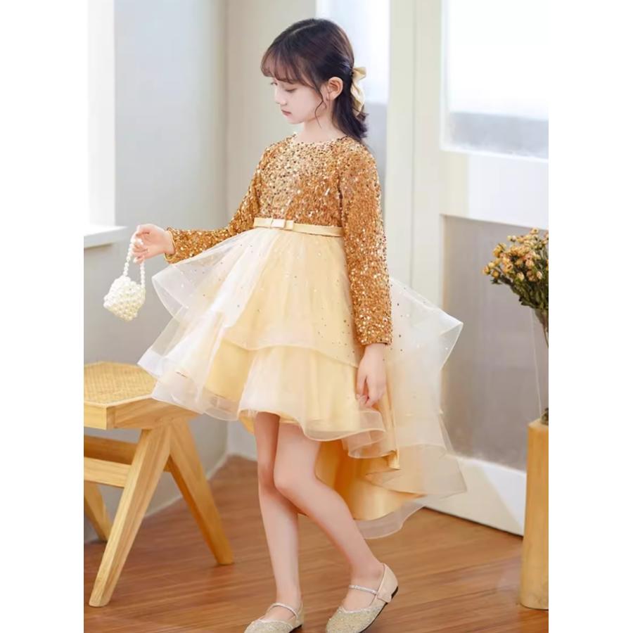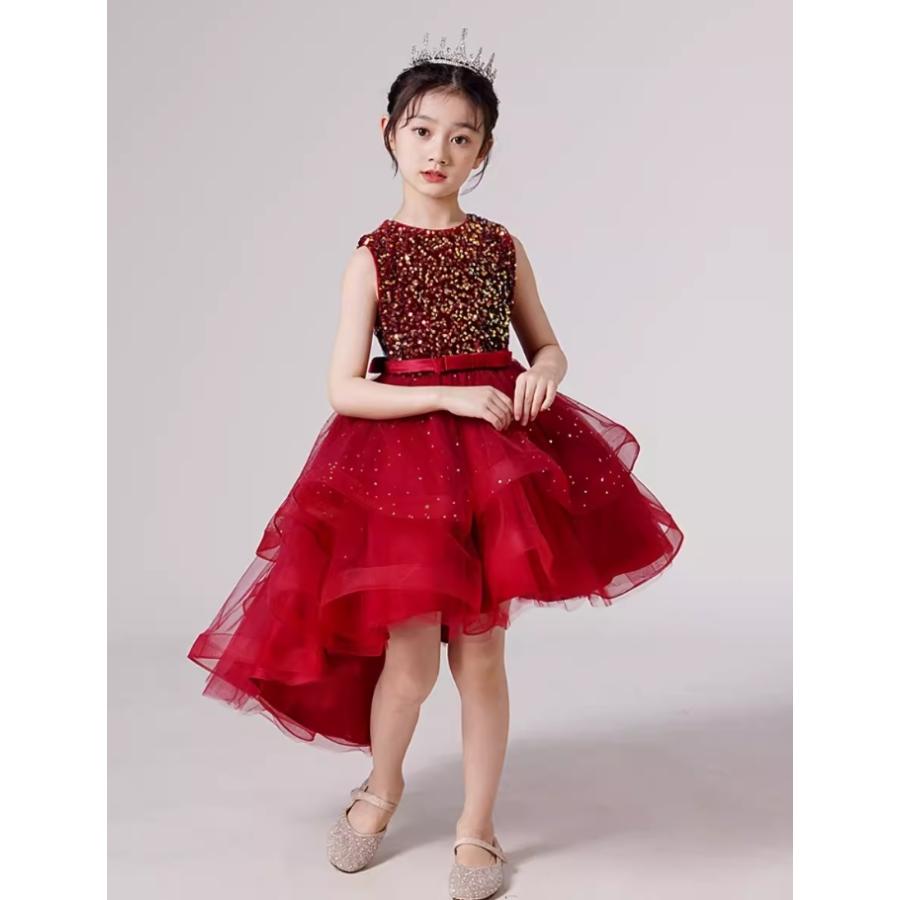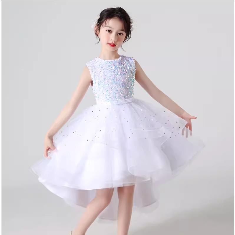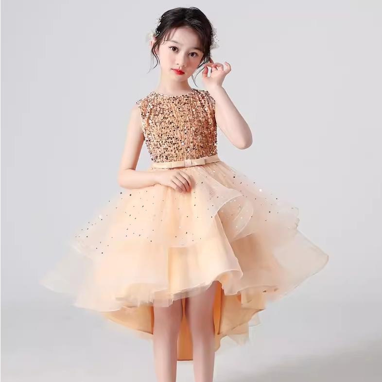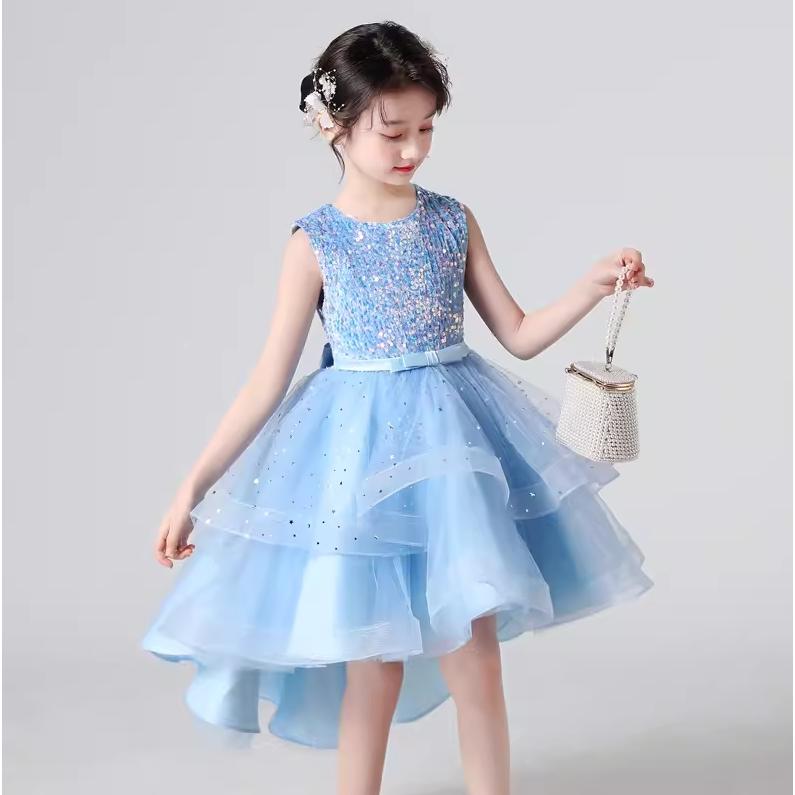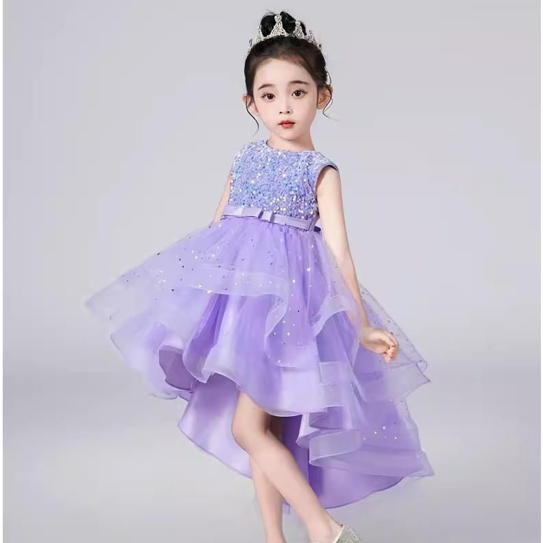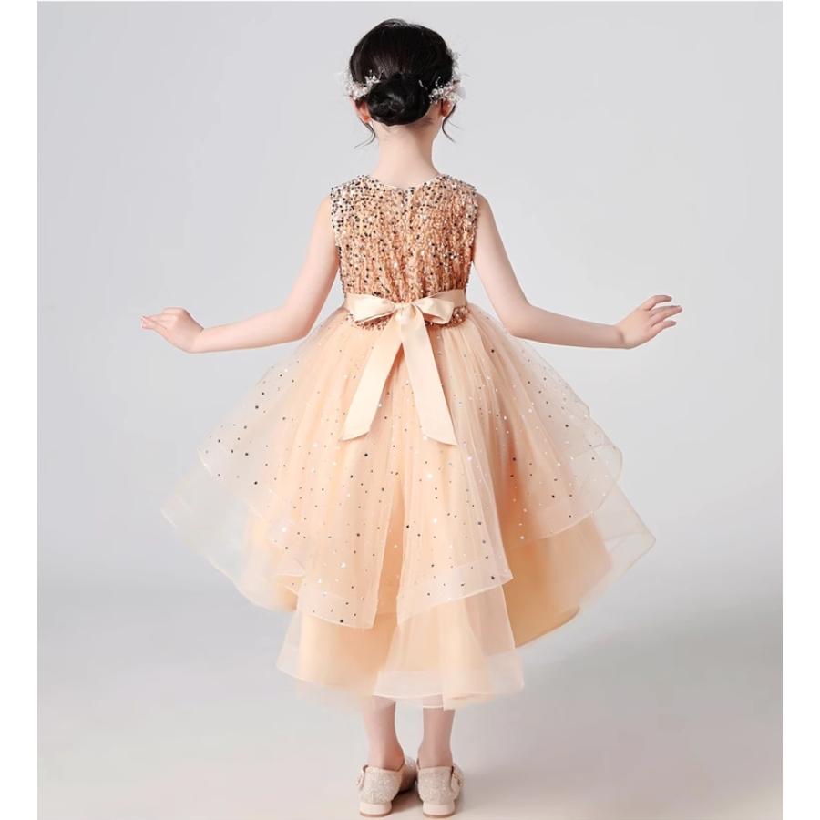 キッズ ドレス 子供 ワンピース ノースリーブ スパンコール グラデーション ふわんり チュチュ 後ろが長い フィッシュテール 美シルエット 可愛い 姫様