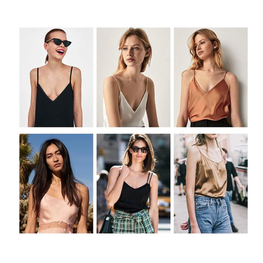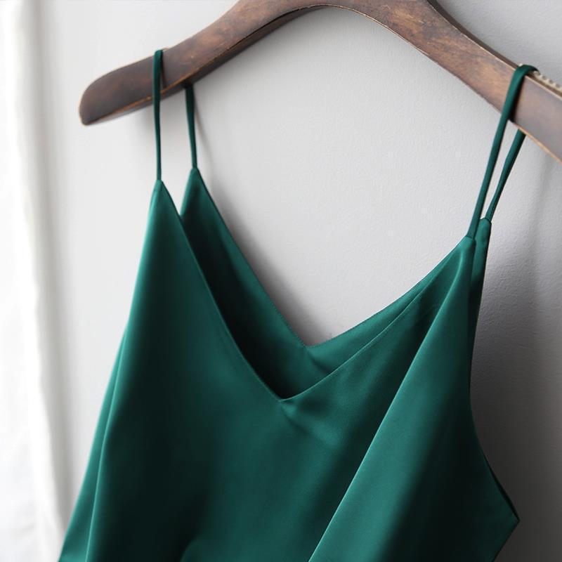 キャミソール カットソー レディース 女性 トップス Vネック ノースリーブ サテン調 光沢感 大きいサイズ 無地 単色 シンプル おしゃれ
