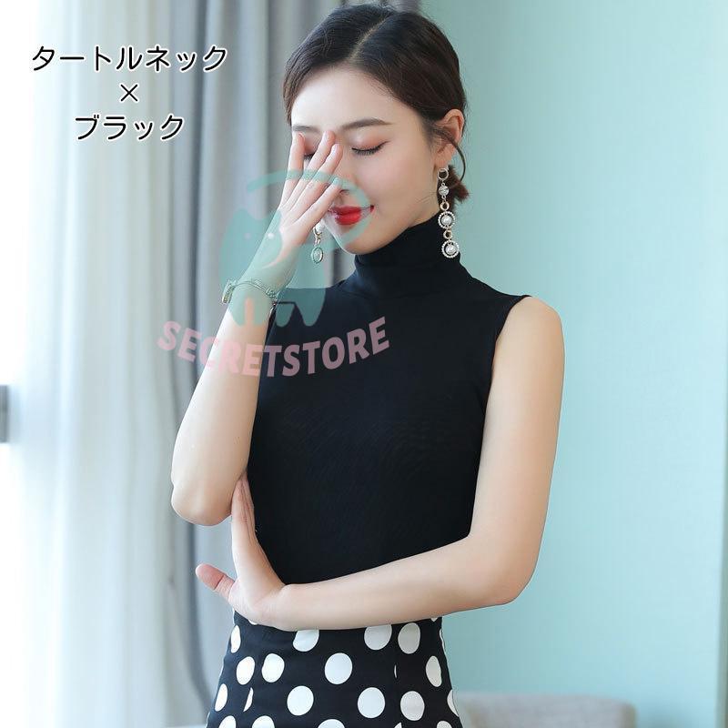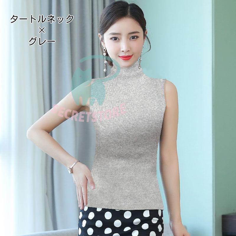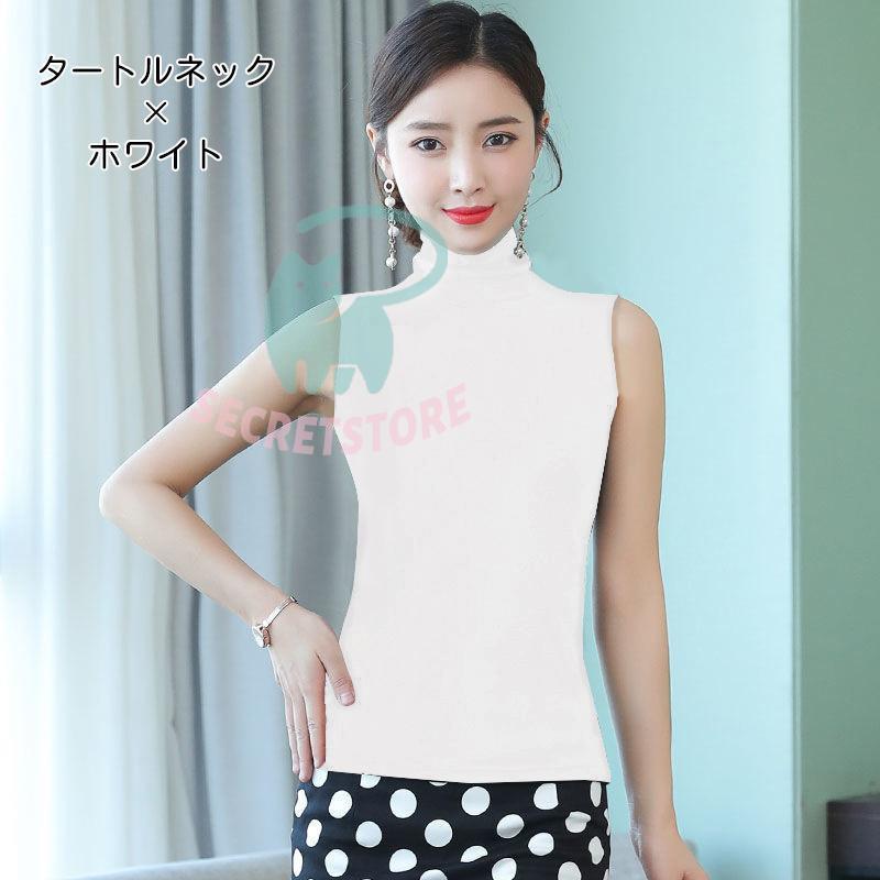 タンクトップ カットソー レディース 女性用 トップス タートルネック ハイネック ノースリーブ 袖なし 無地 単色 シンプル おしゃれ