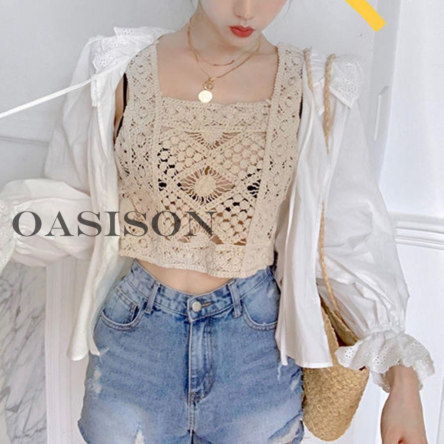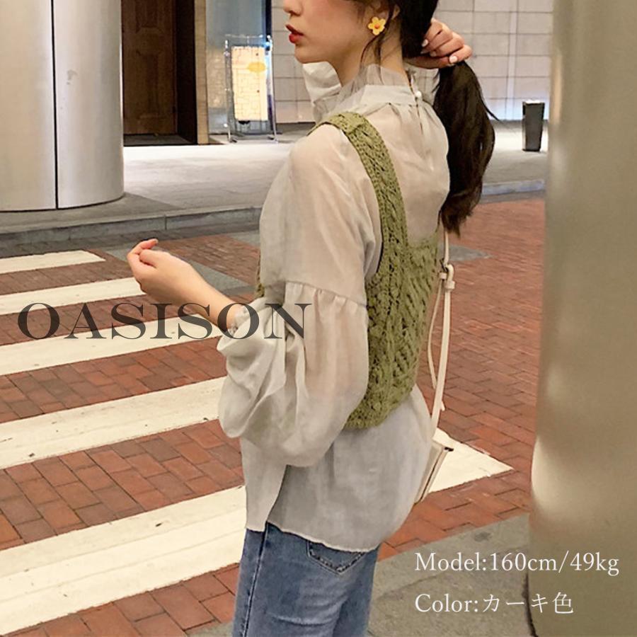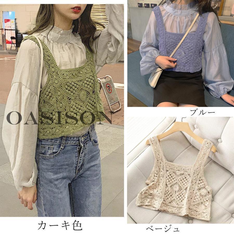 ニットトップス 大人可愛い 透かし編み ニットキャミソール 重ね着
