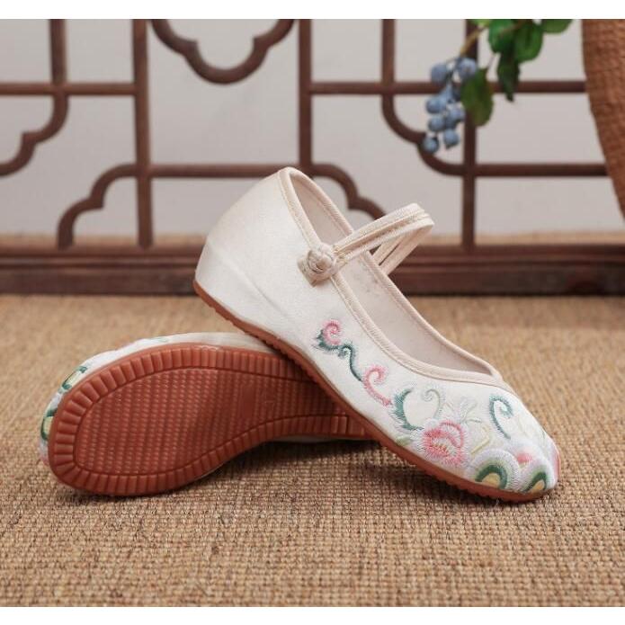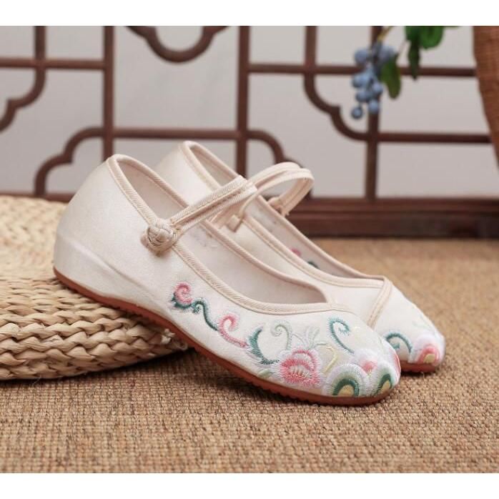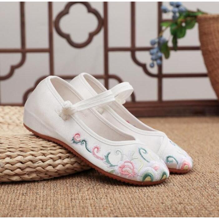 チャイナシューズ 刺?布靴 可愛い チャイナ靴 太極拳シューズ レディース 大人 婦人靴 布地 エスニック 中華民族風 パンプス ストラップ 厚底 カンフー シュー