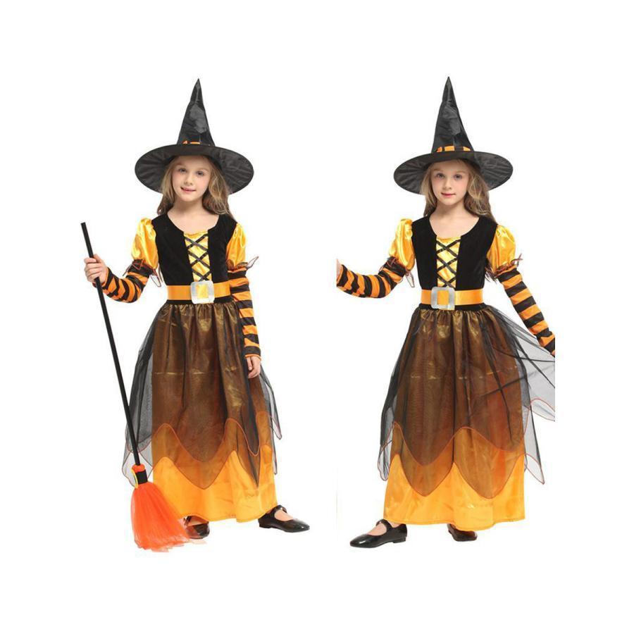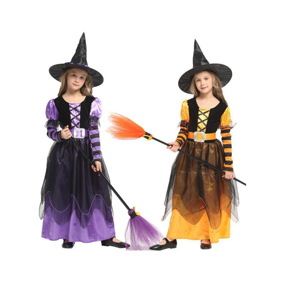 ハロウィン コスプレ 魔女 子供 女の子 衣装 仮装 可愛い 帽子 ドレス ワンピース キッズ 魔女っ娘 人気 コスチューム