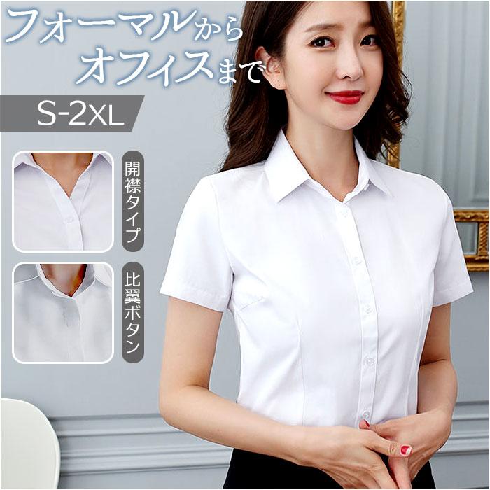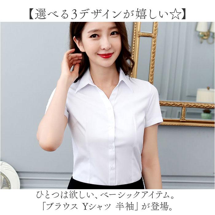 ブラウス Yシャツ 半袖 レディース 通販 シャツ yシャツ ワイシャツ 事務服 制服 フォーマルシャツ フォーマル スキッパー Vネック スリム ポリエステル