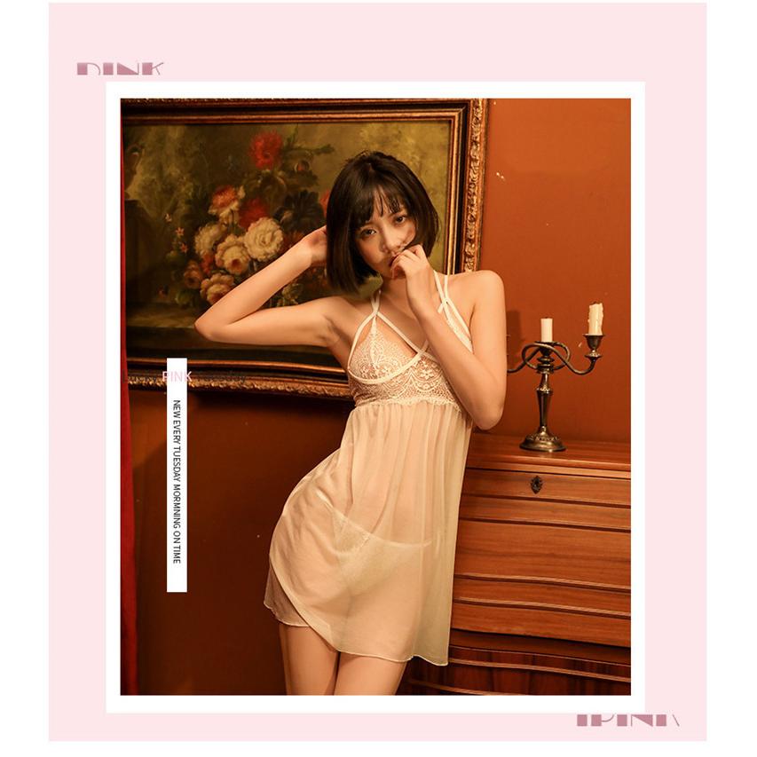 ベビードール レディース ランジェリー キャミソール 花レース エプロン風 勝負下着 セクシー シースルー ショーツ付き 上品 スリップ セール