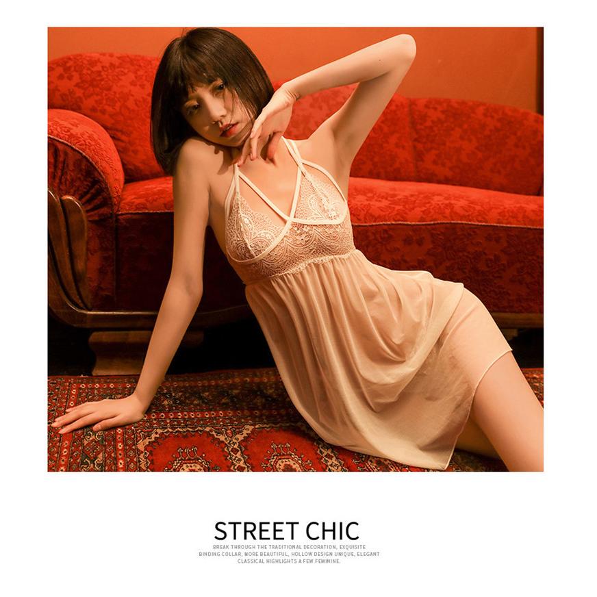 フロントから裾へ見えそうで見えない絶妙なラインで透け感の強いレースをあしらったセクシーデザイン。