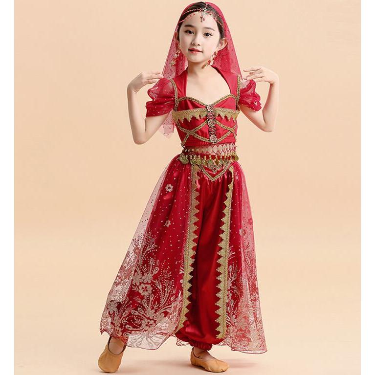 子供ベリーダンス 衣装 アラジンプリンセス全身コスチューム ジャスミン風 ダンス衣装
