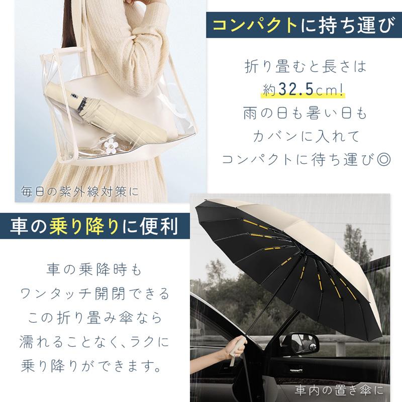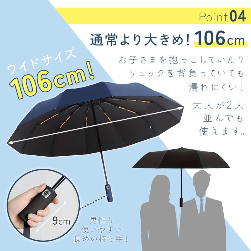 折り畳み傘 晴雨兼用 自動開閉 日傘 雨傘 大きい 24骨 ワンタッチ開閉 106cm 撥水加工 グラスファイバー骨 UVカット メンズ レディース