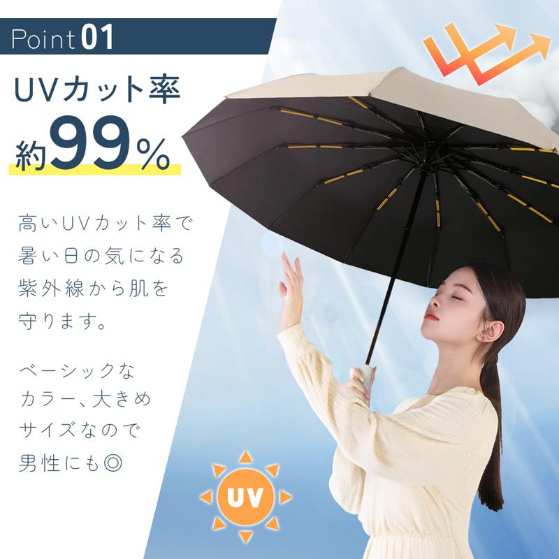 晴雨兼用で、UVカット率99%の機能も備えており、晴れた日の紫外線からもしっかりと保護します。