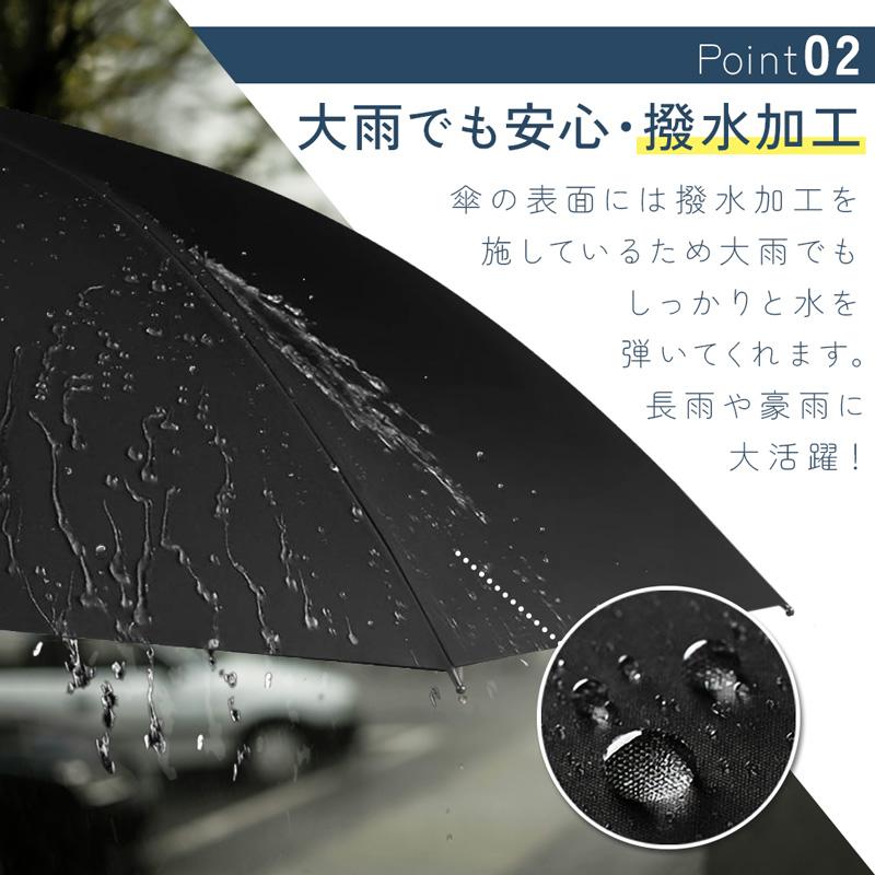 撥水加工が施されているため、雨水を素早く弾き、傘を閉じた後の水滴の心配も軽減されます。