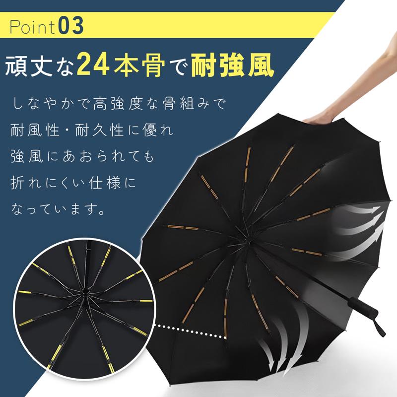 頑強なグラスファイバー製の24本骨構造を採用しており、強風時でもひっくり返りにくい設計が特徴です。