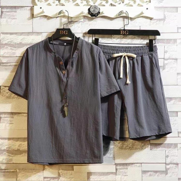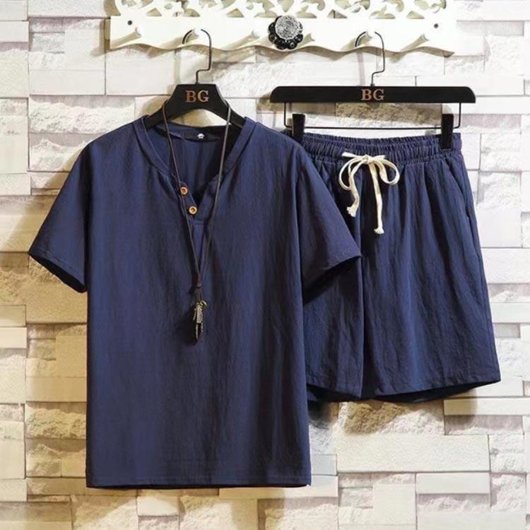 【送料無料】メンズ 上下セット tシャツ 綿麻 部屋着 甚平 麻 夏用 メンズ 半袖 大きいサイズ リネン パンツ 上下 セットアップ