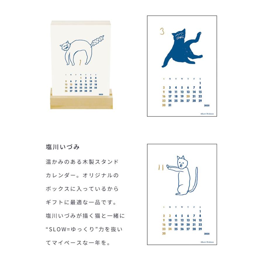 カレンダー 2025 卓上 おしゃれ デスク 用 かわいい インテリア 大人 シンプルライフ 木製 スタンド ノベルティ 日曜日始まり 塩川いづみ