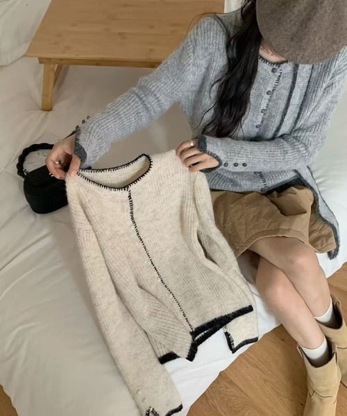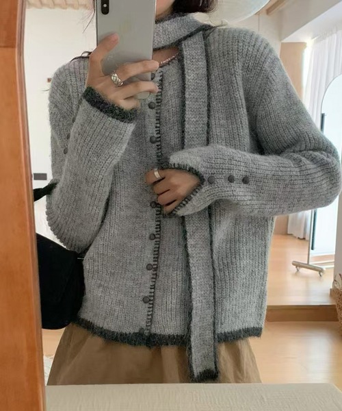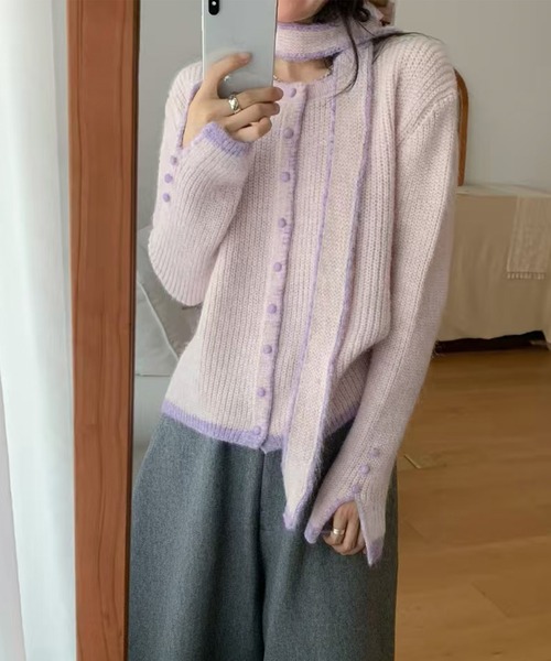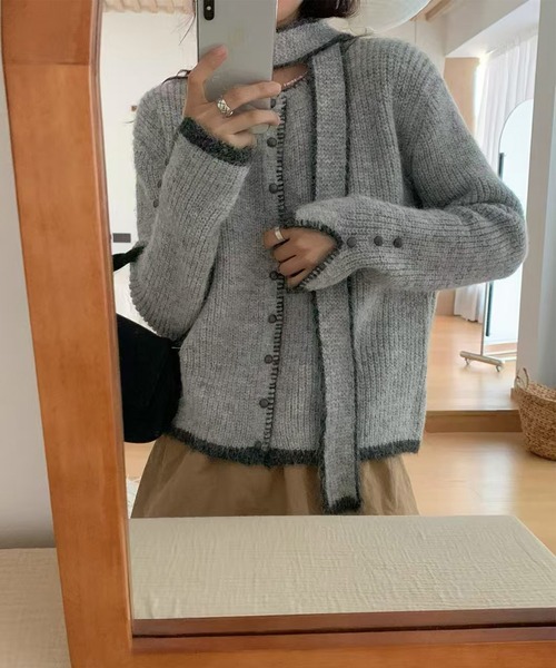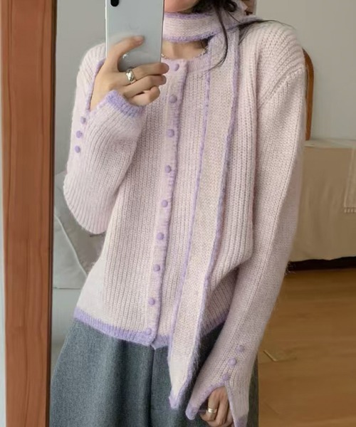 商品名:配色ステッチニットカーディガン&スリムニットストール