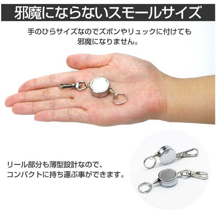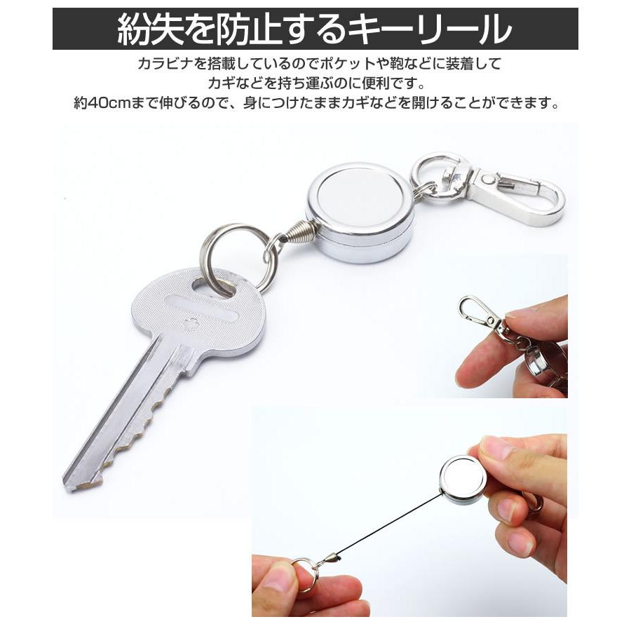 キーリール 小型 リール カラビナ 軽量 キーリング キーホルダー コード 鍵 キャンプ アウトドア 釣り 伸縮 伸びる