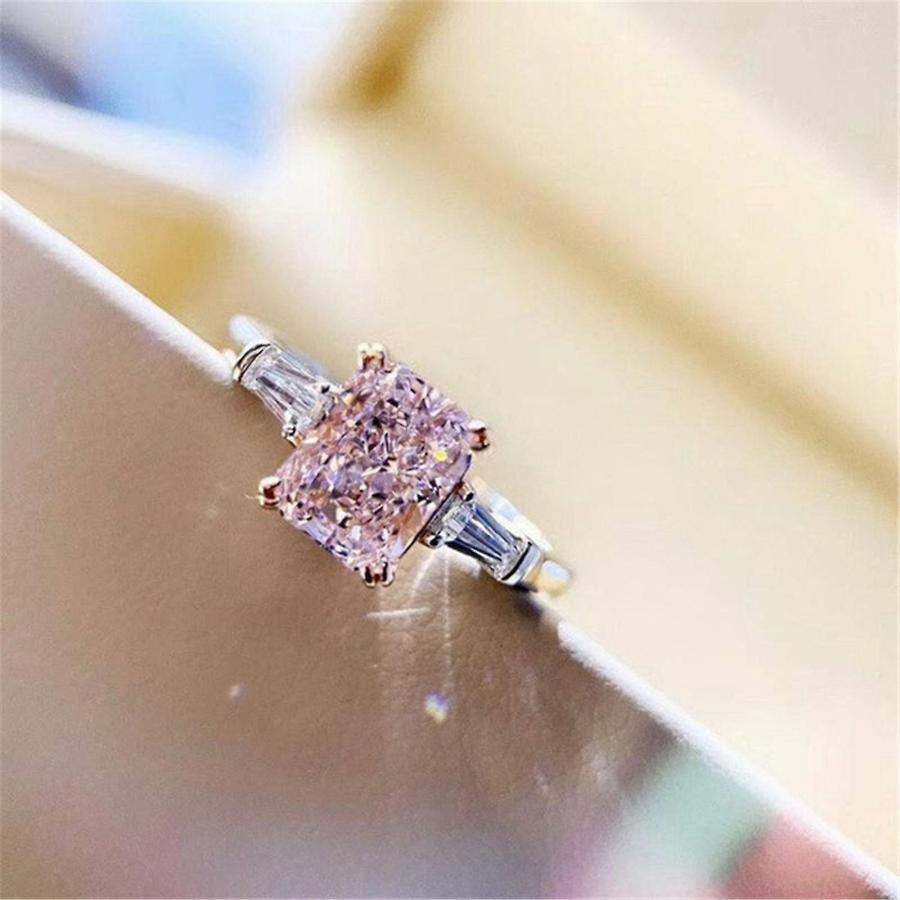 クッションシェイプピンクダイヤモンドジルコンリングバレンタインデーエンゲージメント