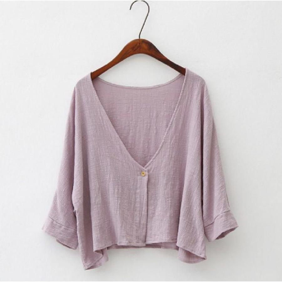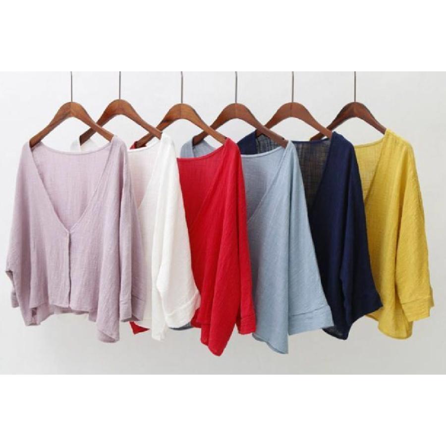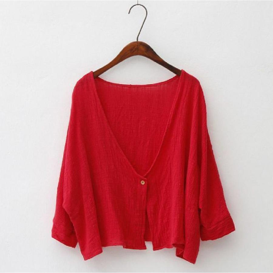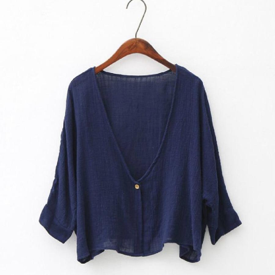 サマーカーディガン ボレロ レディース トップス 七分袖 7分袖 Vネック 羽織り ショート丈 無地 シンプル ドルマン 冷房対策 綿麻素材 薄手 二