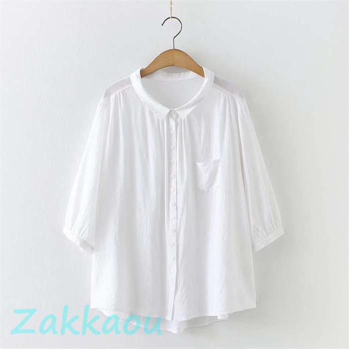 シャツ レディース 半袖 折り襟 白 夏 お洒落 ブラウス 前開き オフィス トップス 綿 きれいめ 薄手 透け感 大人 カジュアル シンプル 体型カバー