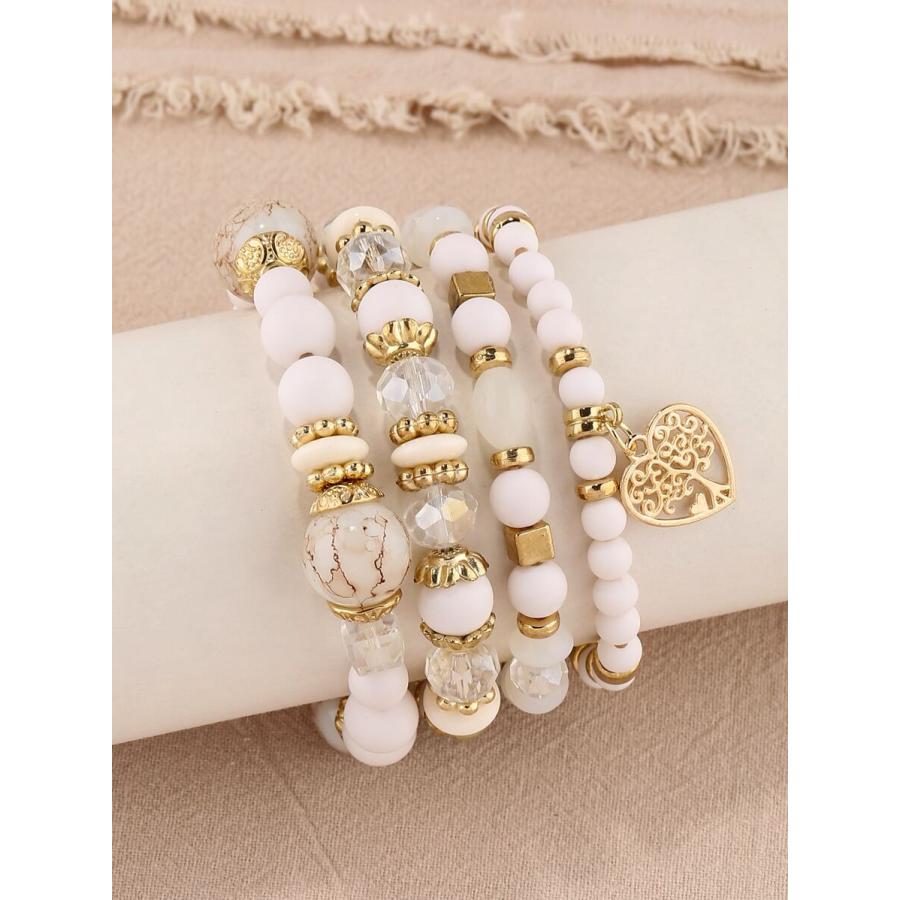 ジュエリー レディース ブレスレット セット バレンタイン、母の日におすすめ ハート型ペンダント付きスタイルブレスレット 4個セッ