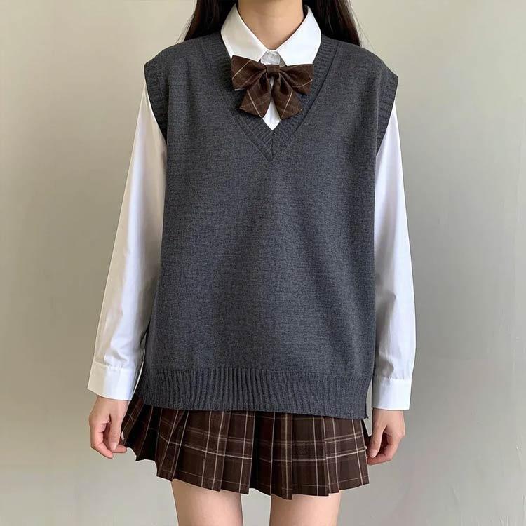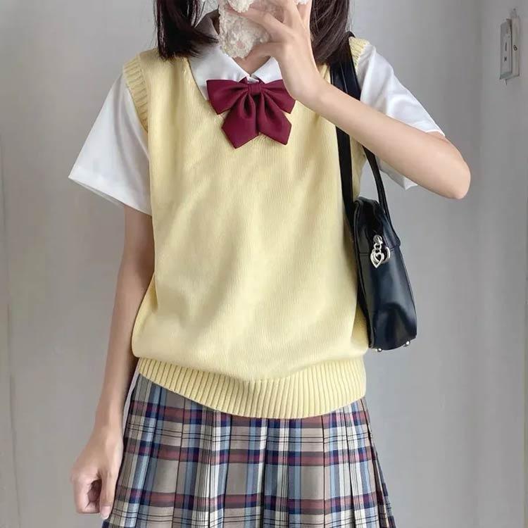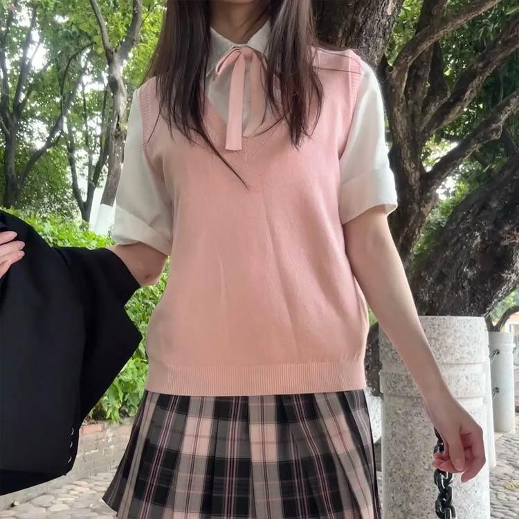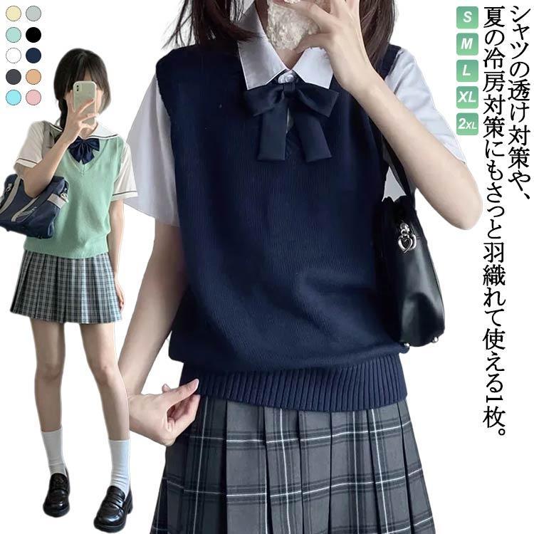 スクールベスト 女子 春 夏 制服 学生服 Vネック ベスト 入学準備 通学 中校生 高校生 トップス 女の子 スクールセーター ニットセーター 二ッ