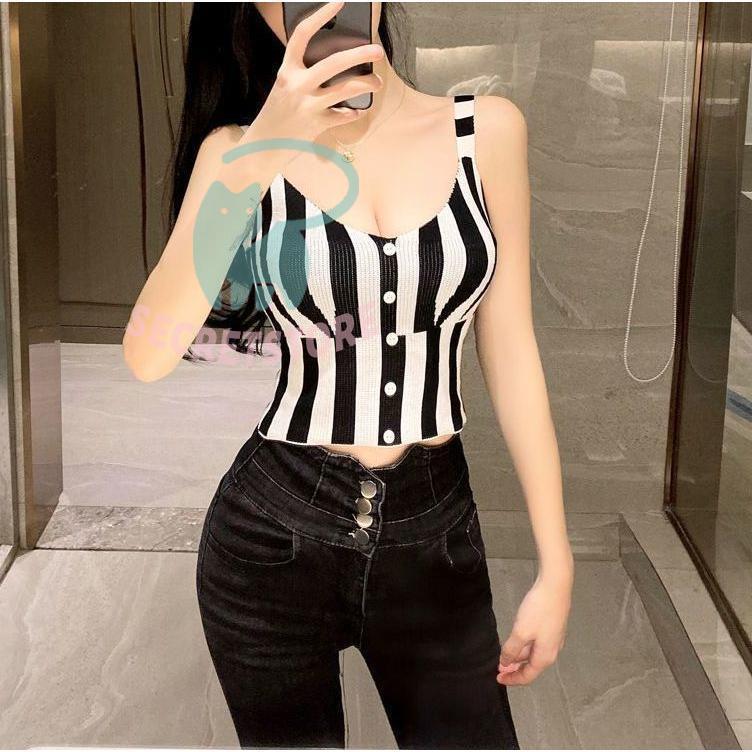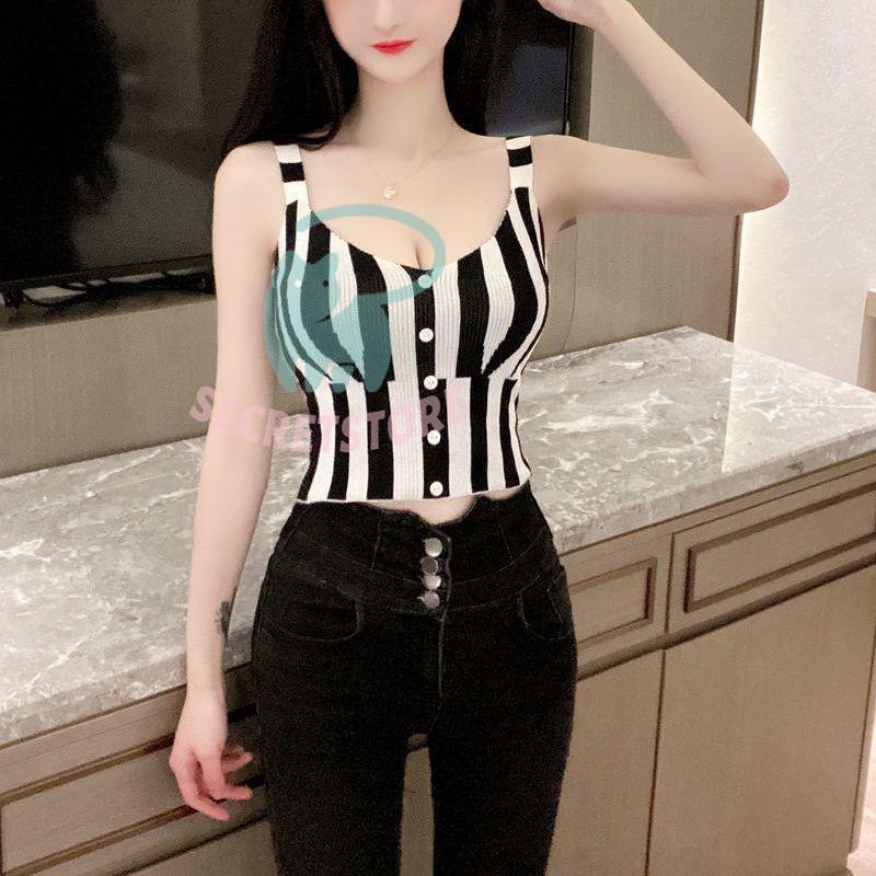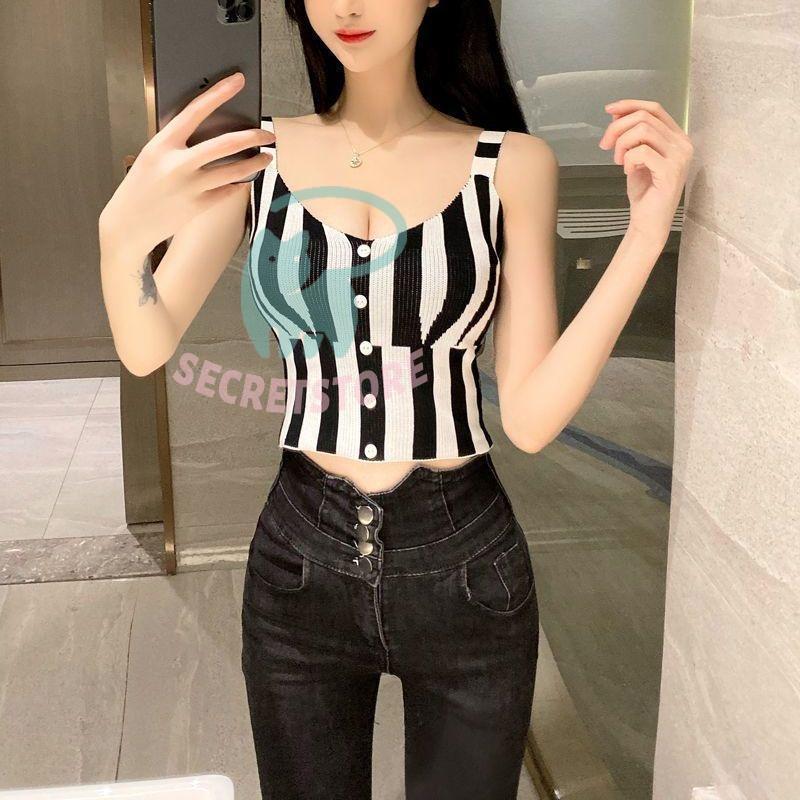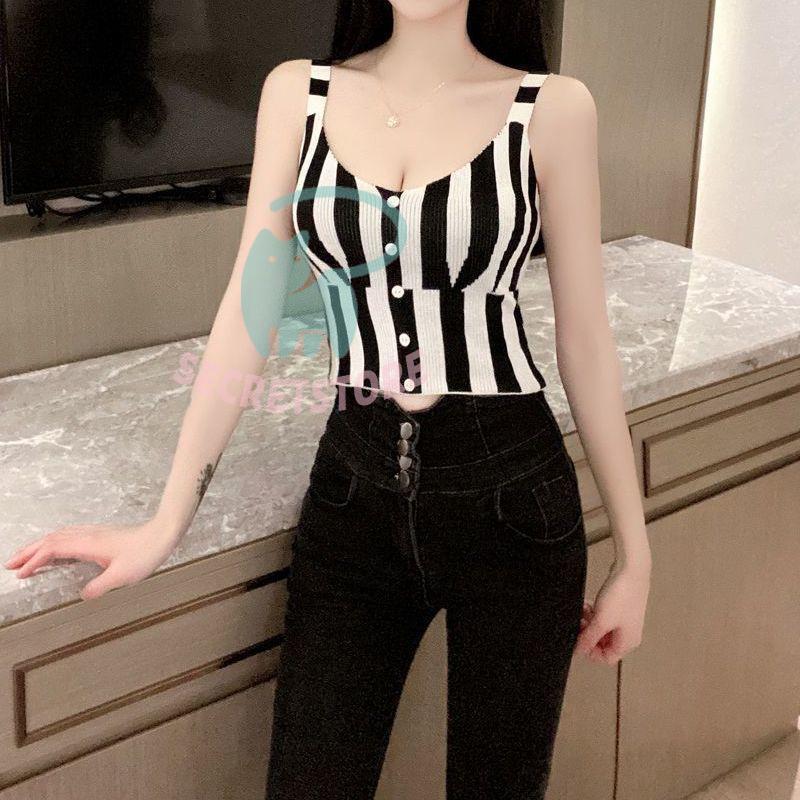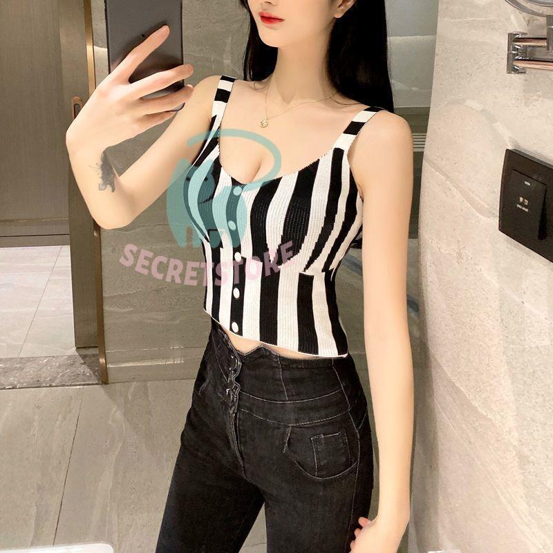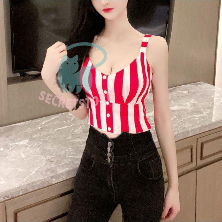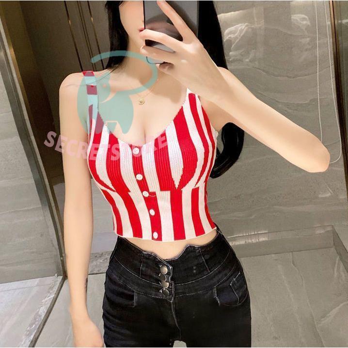 “タンクトップ レディース ノースリーブ トップス ストライプ ショート丈 切替 スリム フィット 袖なし ブラック レッド カジュアル” の口コミを投稿します