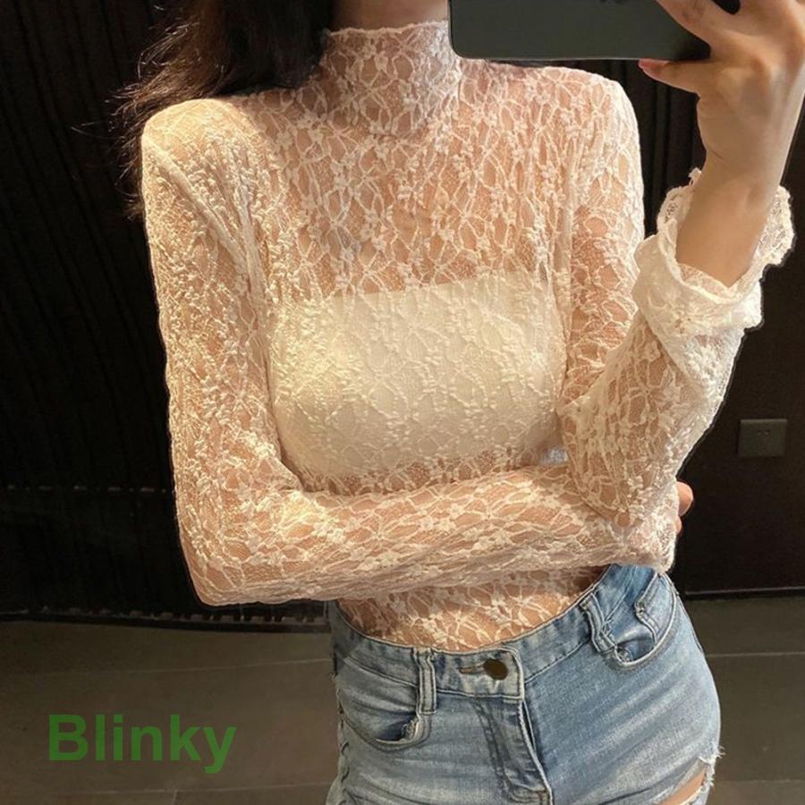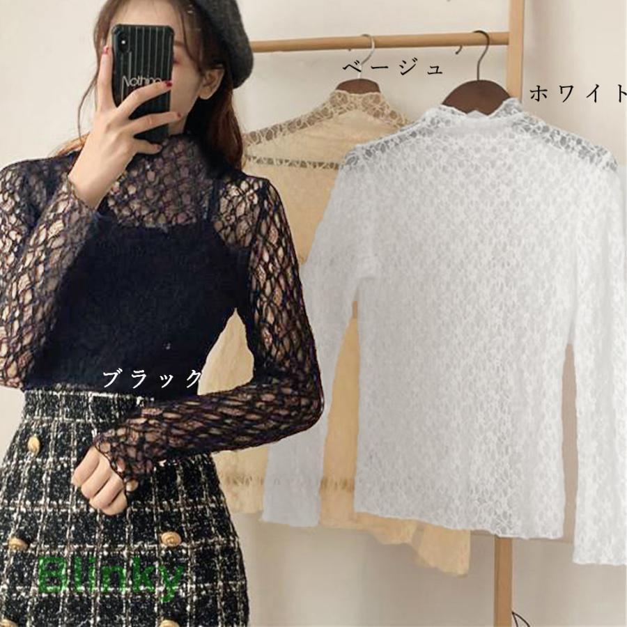 インナー レディース ハイネック シースルー シャツ 長袖 大人 シアーブラウス 春秋 オフィス 韓国風 きれいめ