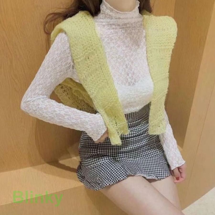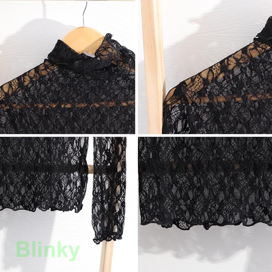 ふんわり着こなせる質感で女性らしさを感じるプチハイネックレースブラウス