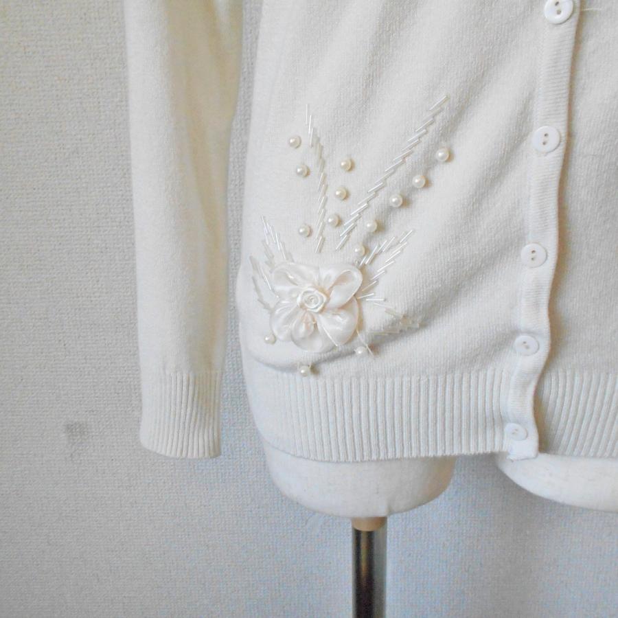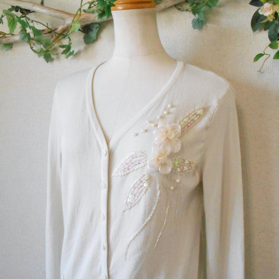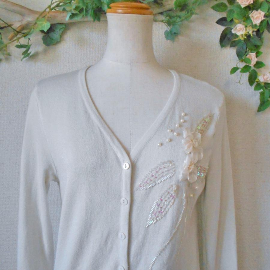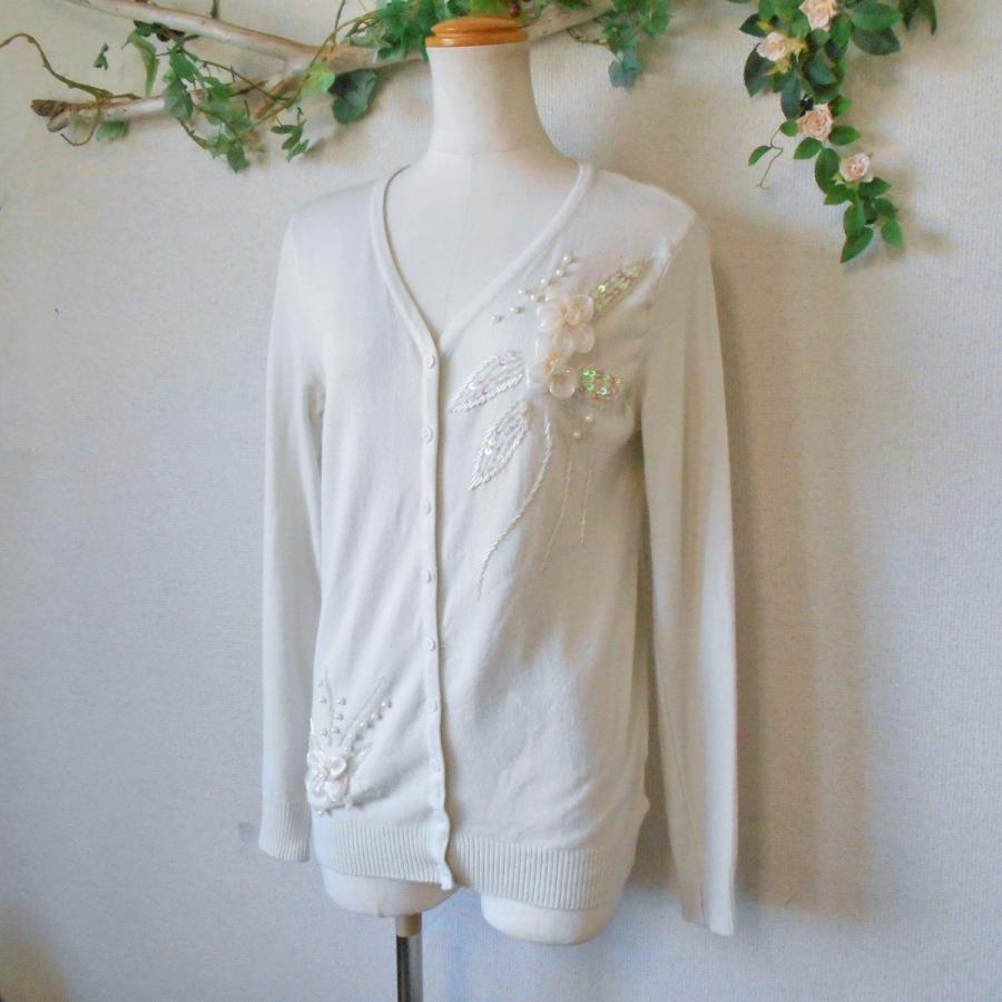 トレビアン TELVIAN お花 モチーフ & ビーズ ビジュー の 素敵 な レディース 用 カーディガン