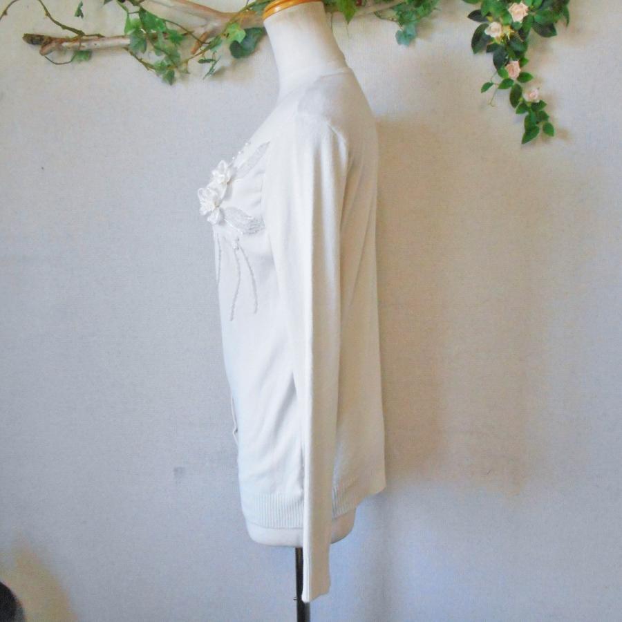 【ポイント】トレビアンの長袖カーディガンになります。お色はアイボリーくらいの薄いお色で、秋冬春の3シーズン使えるお品です。