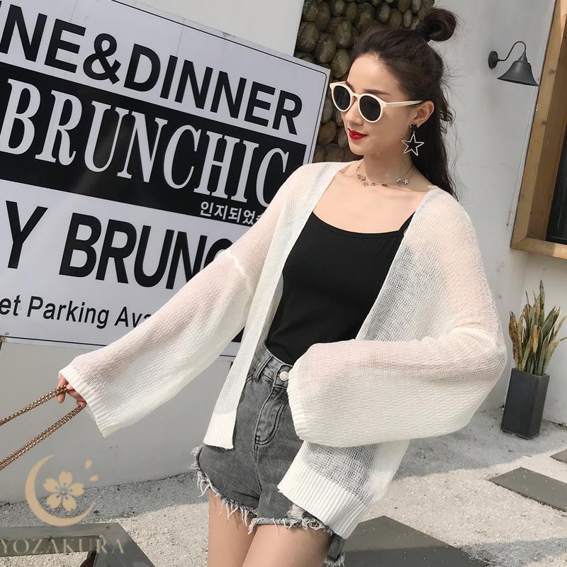 ニットカーディガン レディース ボレロ 薄手 透け感あり 春 秋 長袖 ショート丈 日焼け止め 透け感デザイン ゆったりデザイン 夏にも着れる おしゃれデザイン