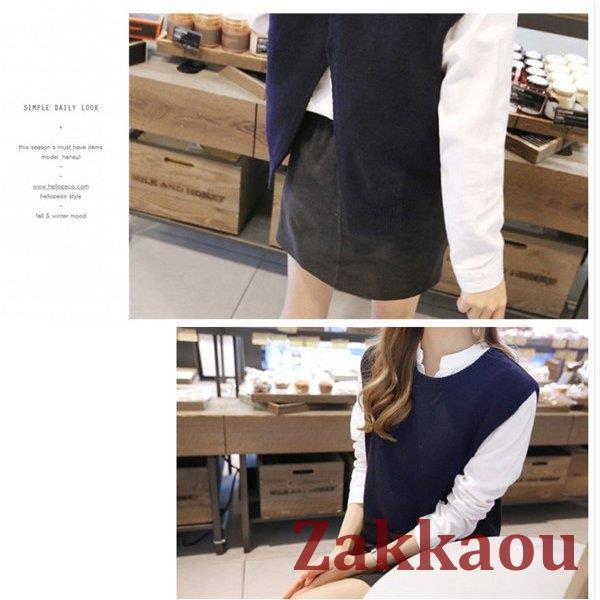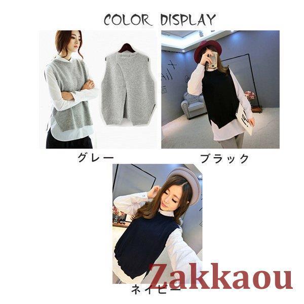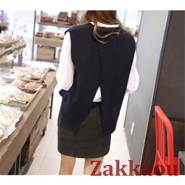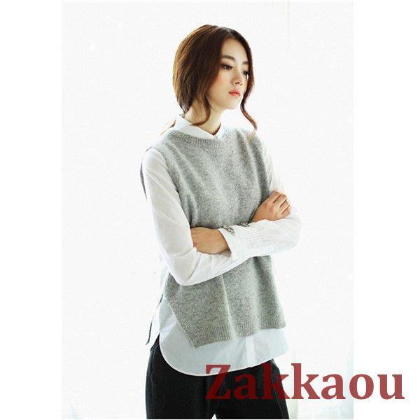 ニットベスト レディース チョッキ サイドスリット クルーネック スクールベスト ベスト トップス ショット丈 参考体重45-75kg