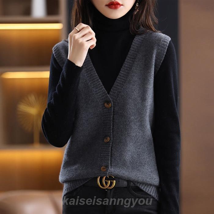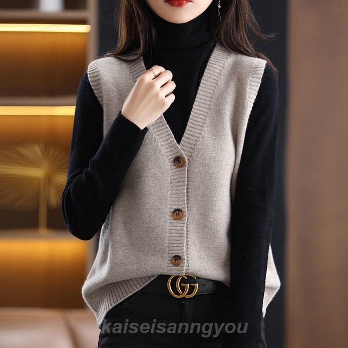 ニットベスト Vネック レディース ノースリーブ 開襟セーター 袖なし ニットトップス 春秋冬 おしゃれ ジレ 重ね着 ゆったり