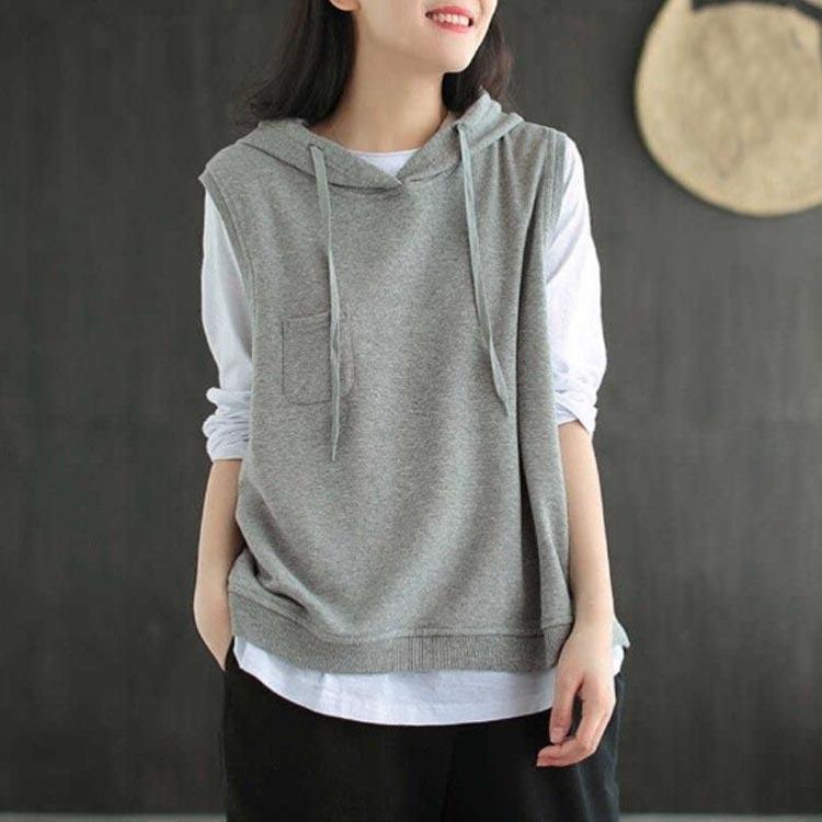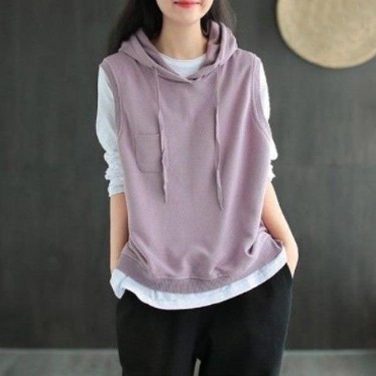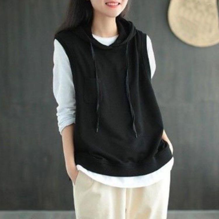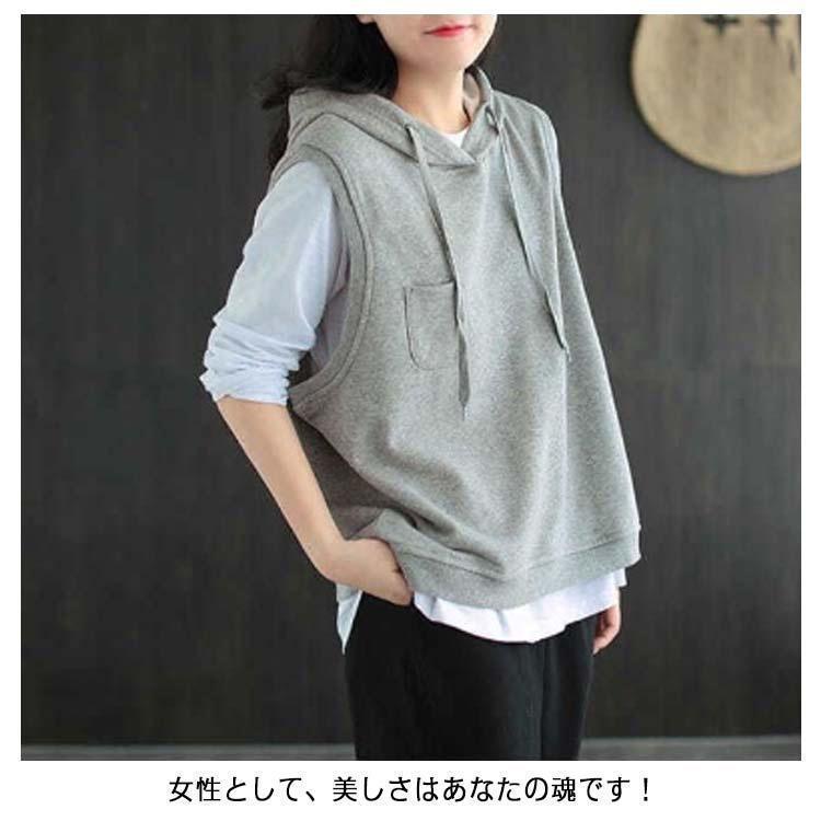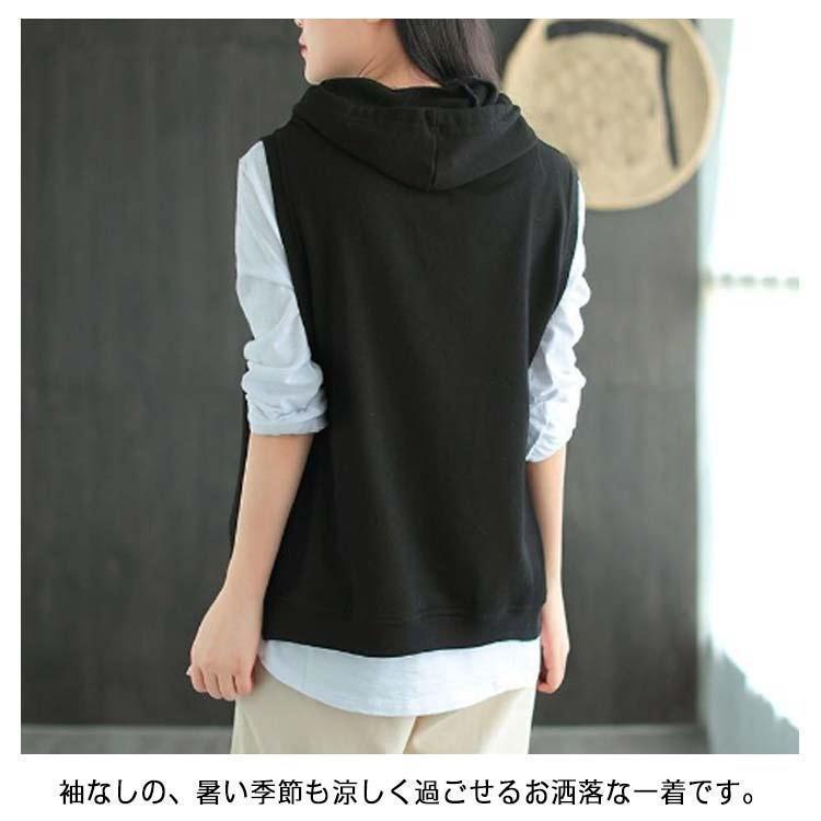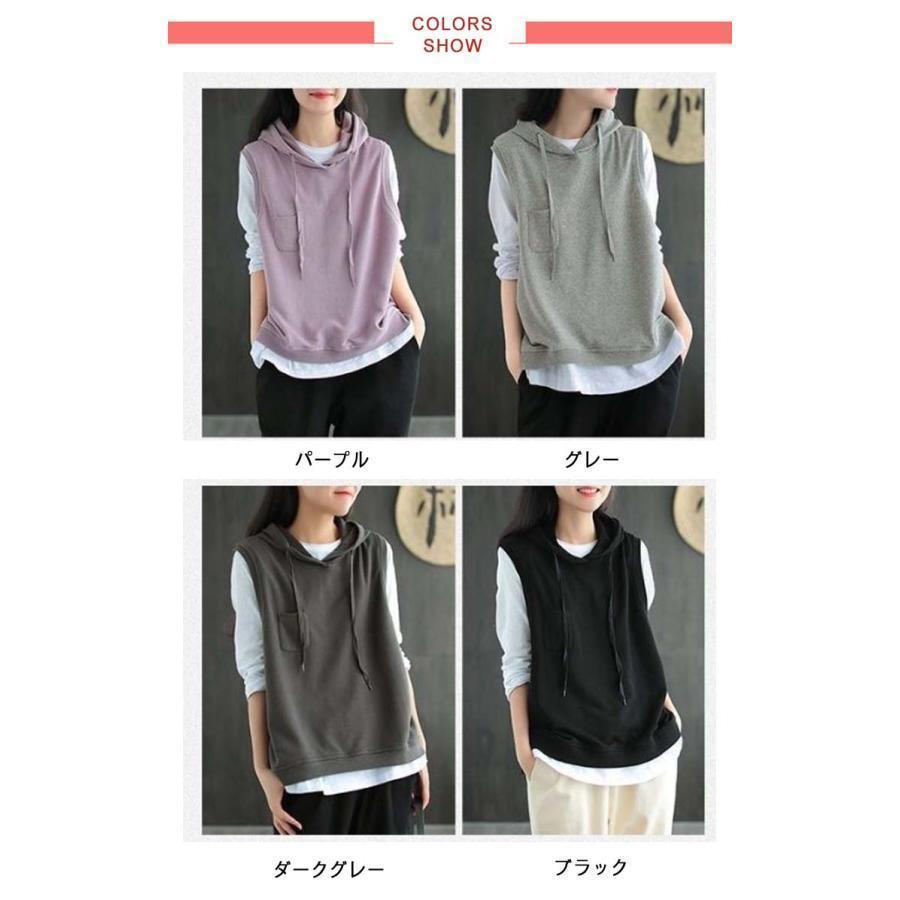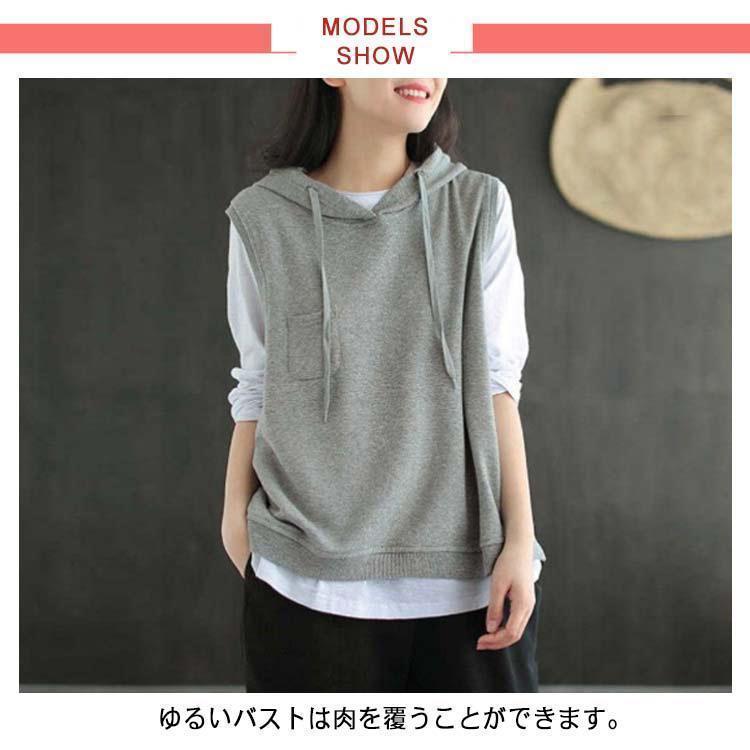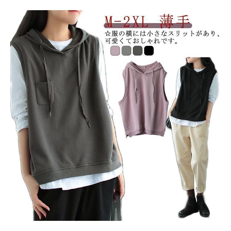 パーカー ベスト レディース ノースリーブ フード付き プルオーバー ゆったり 重ね着 レイヤード トップス お洒落 カジュアル 春 夏 秋