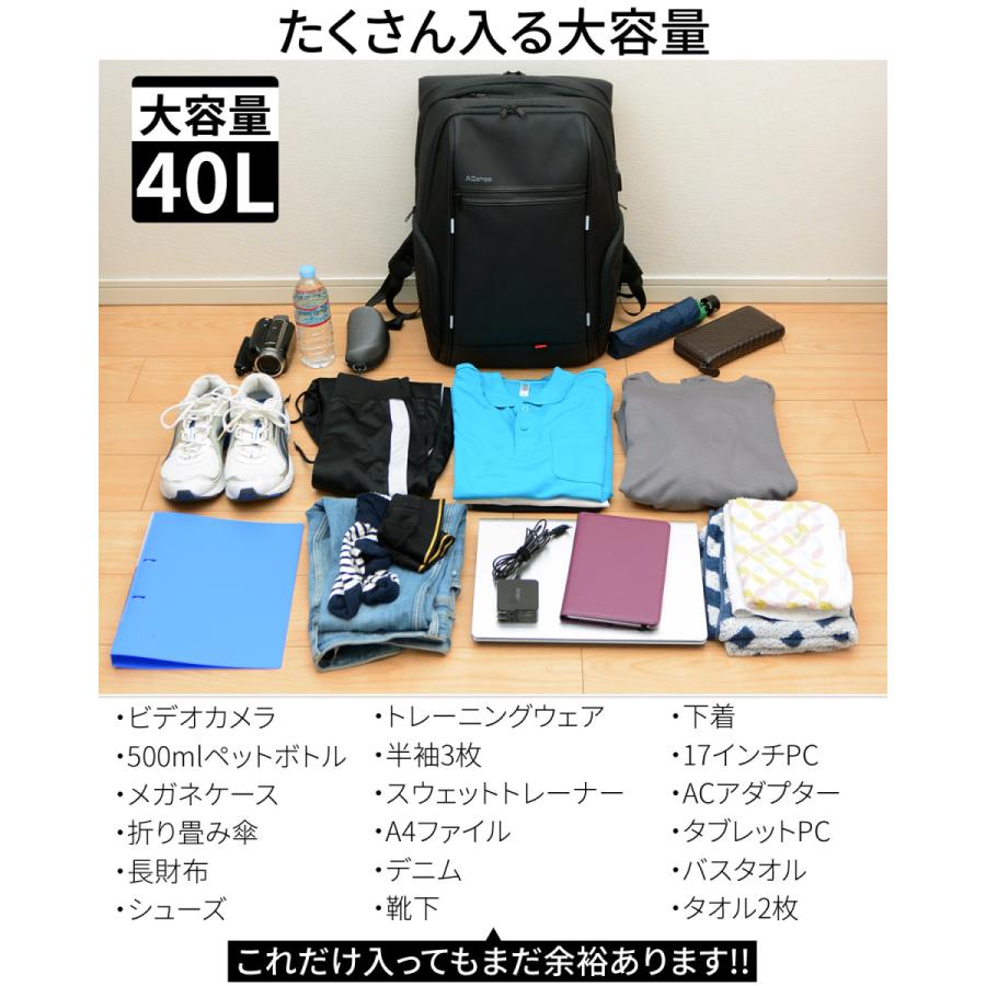 ビジネスリュック 大容量 メンズ 防水 レインカバー付き 40L 通勤 通学 20代 30代 チェストベルト付属 A4 ノート PC 収納 黒 AQshop セール