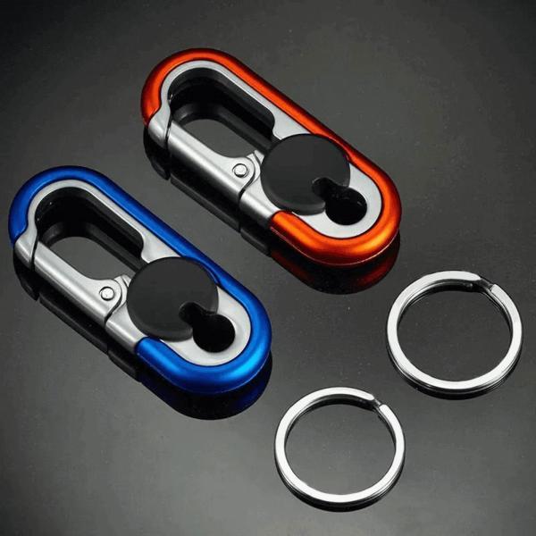 [強力なスプリングクリップ]: 強力なスプリングクリップにより.ベルトやバッグに掛けてもキーチェーンの形状が崩れず.どこにでも取り付けられます.
