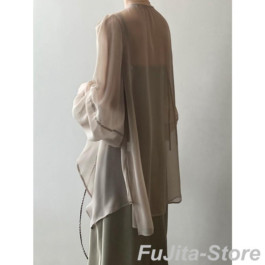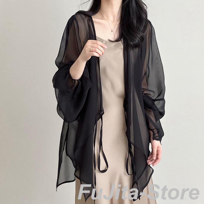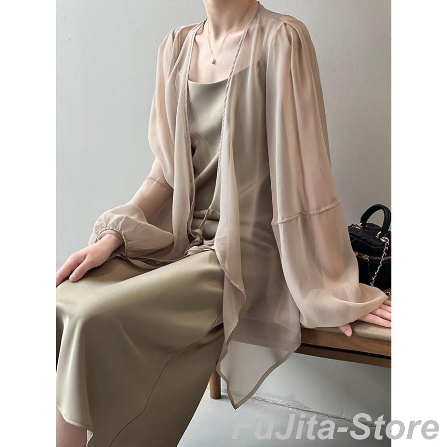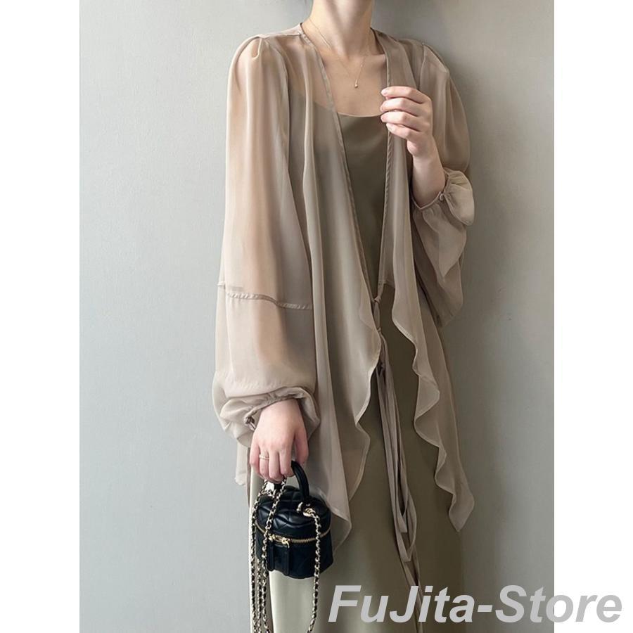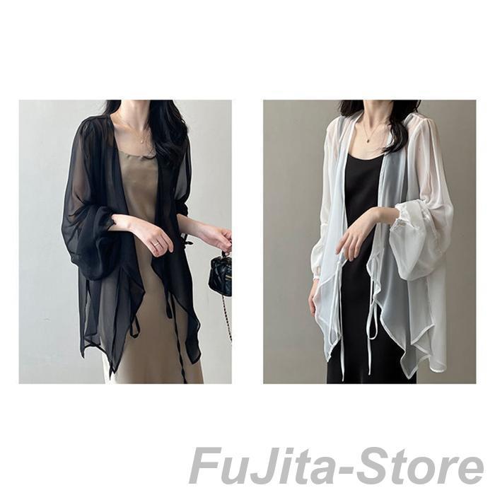 ロングカーディガン レディース シフォンカーディガン 夏 ロング カーディガン 透け感 柔らか 長袖 キレイめ ライトアウター 羽織 パフスリーブ ボリューム袖 ふんわり 日焼け対策 冷房対策 紫外線対策 薄手 爽やか カジュアル 大人可愛い オシャレ