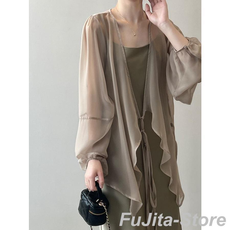 ロングカーディガン レディース シフォンカーディガン 夏 ロング カーディガン 透け感 柔らか