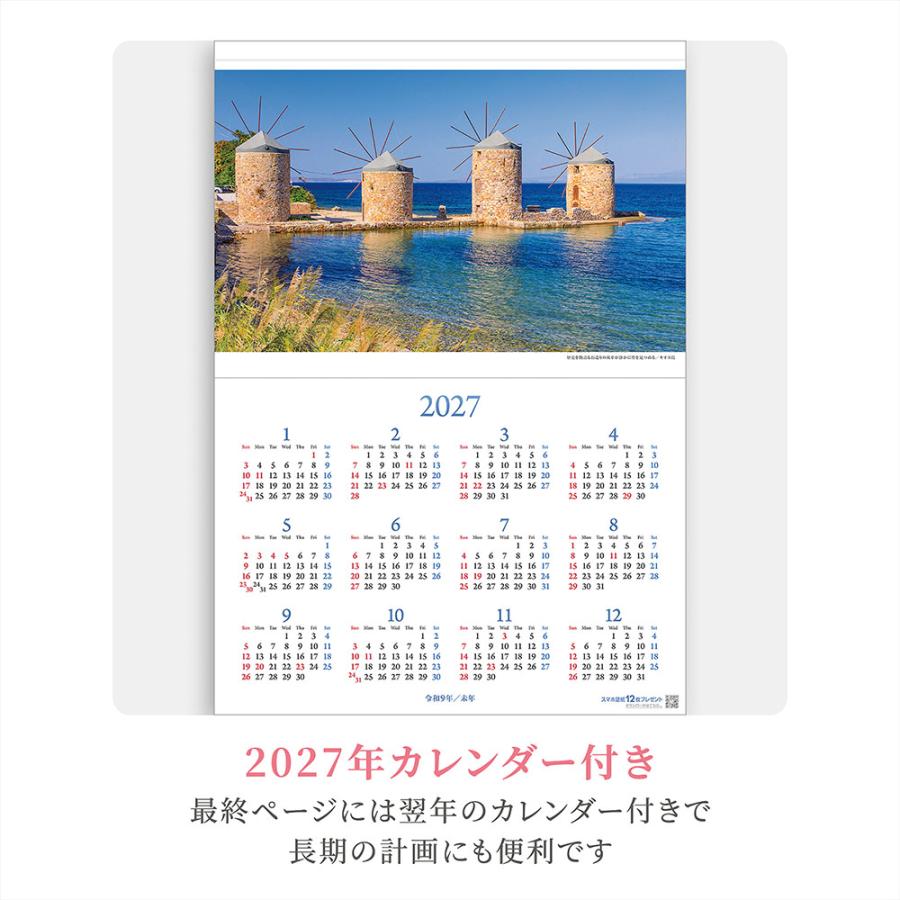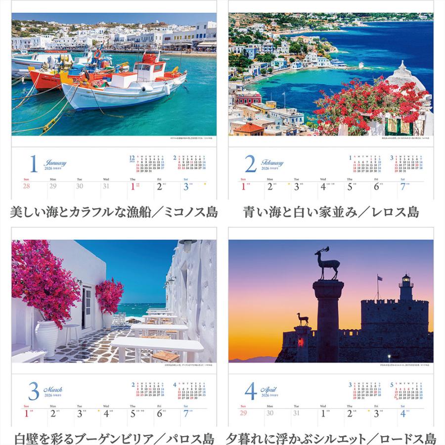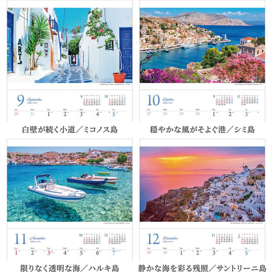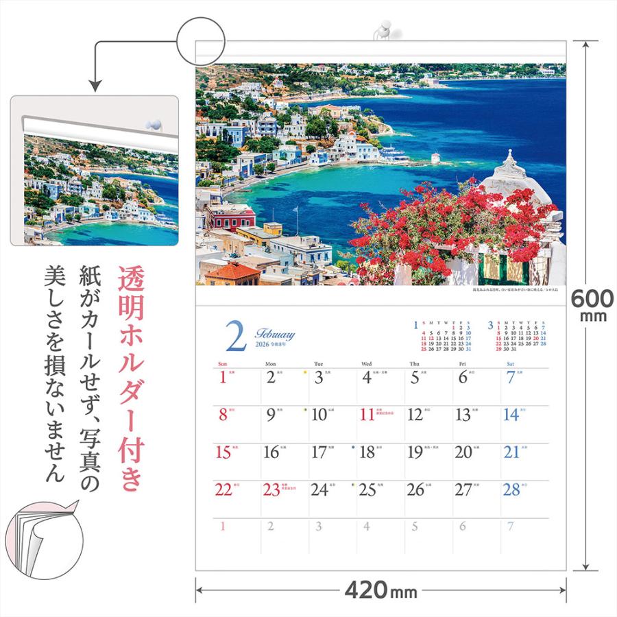 写真工房 『エーゲ海の島々 』2026年 カレンダー 壁掛け 風景 【透明ホルダー付 300×420】 スマホ壁紙12枚付 YA-07