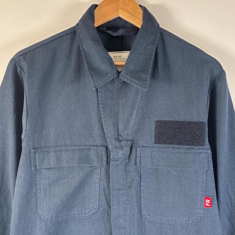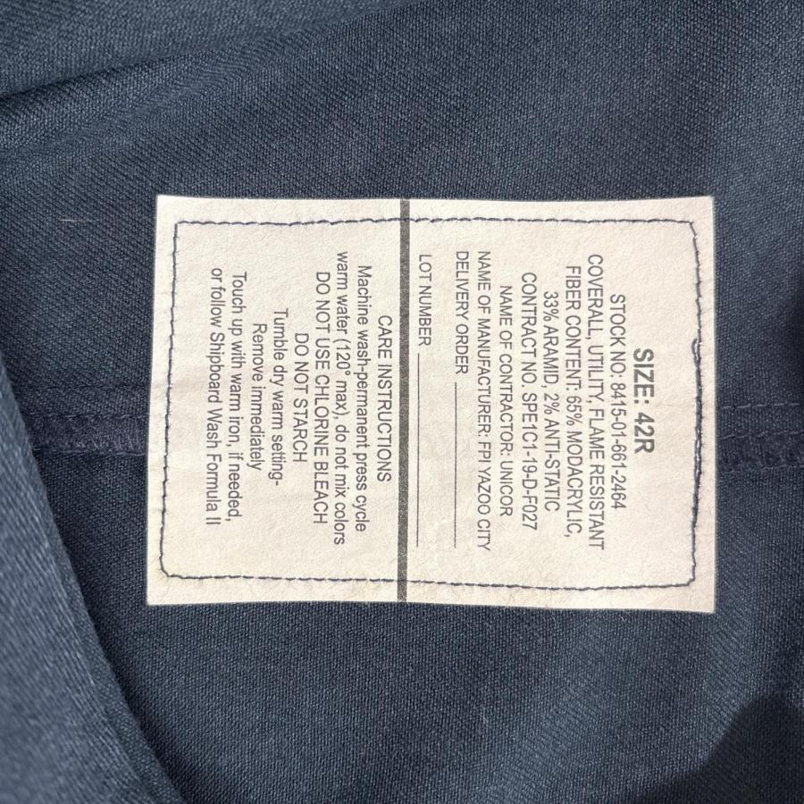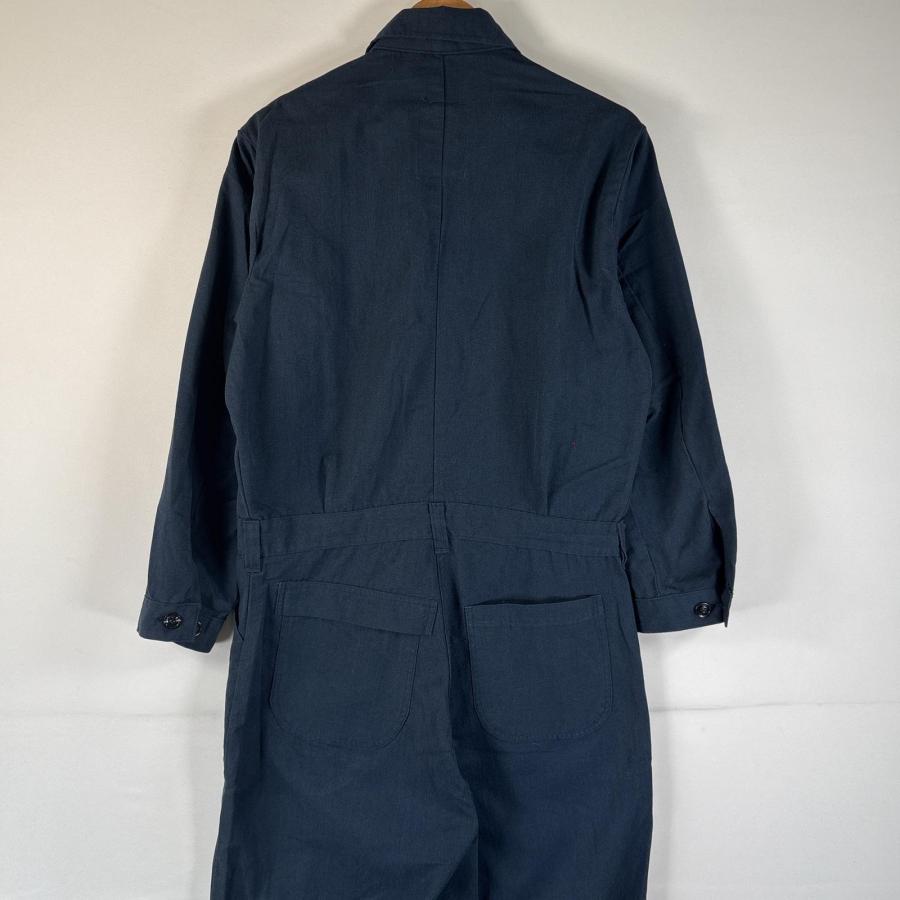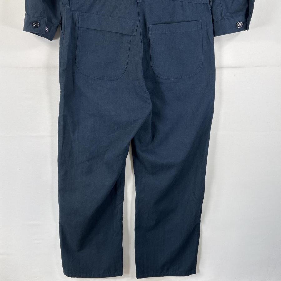 古着 ミリタリー 長袖つなぎ オールインワン ワーク 作業着 ベルトループ 米軍実物 FR ダブルファスナー 42R ネイビー 無地 メンズ
