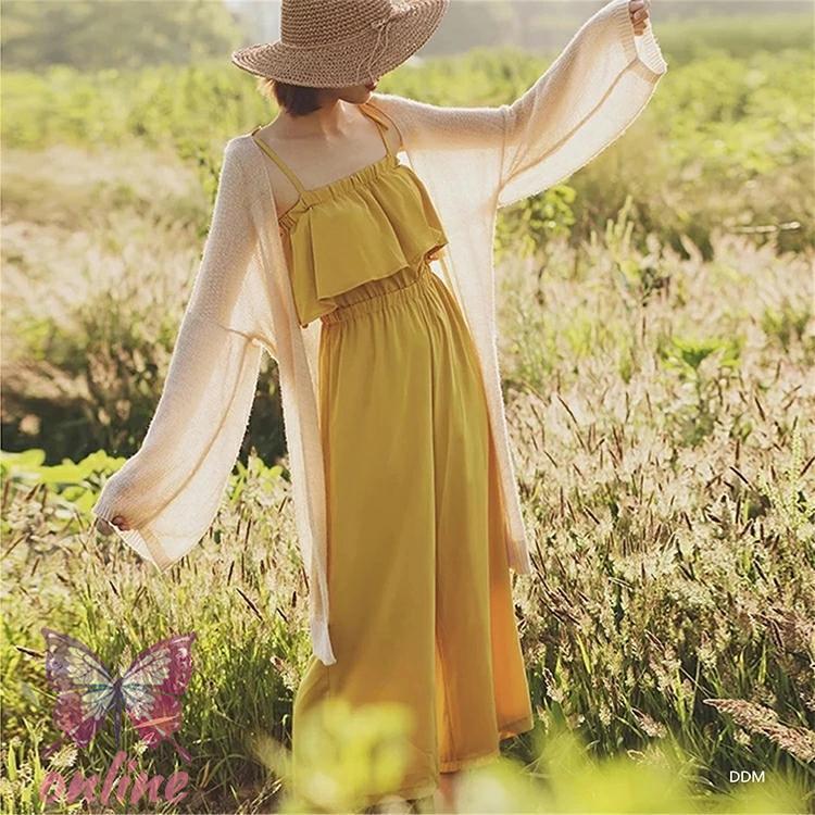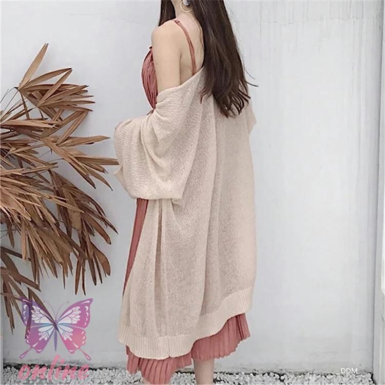 接触冷感 カーディガン サマーニット レディース ロング丈 春夏 トップス 長袖 UV カット 2色 シアーニットトッパーカーディガン 薄手 涼しい 冷感 スリット入り