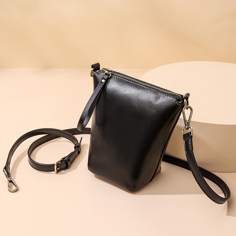 本革レディースバッグニューレトロハンドメイドワックス牛革バケットバッグレディーストートバッグショルダークロスボディバッグ(rl100013)