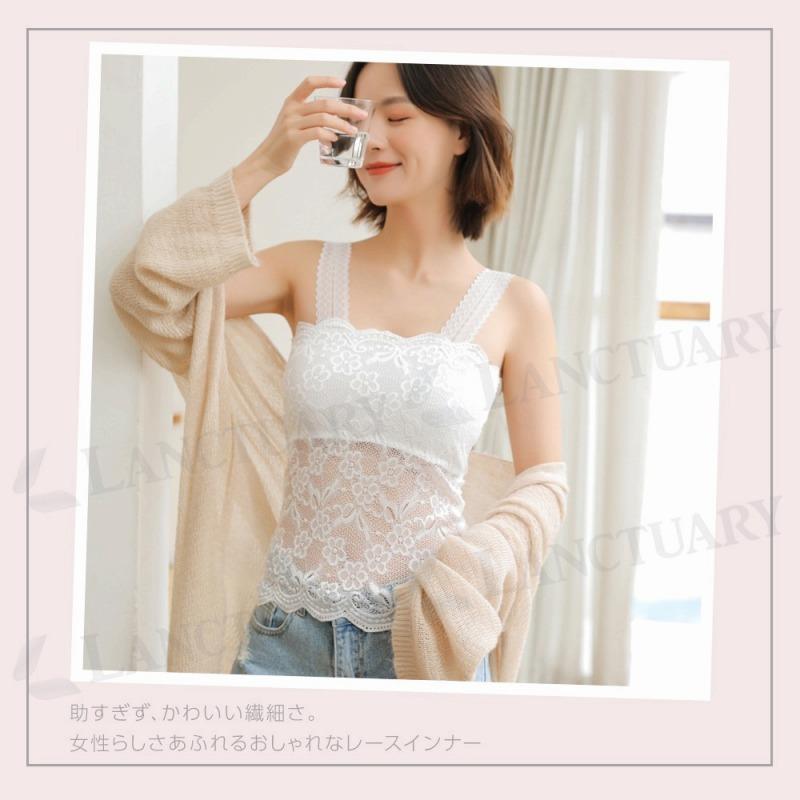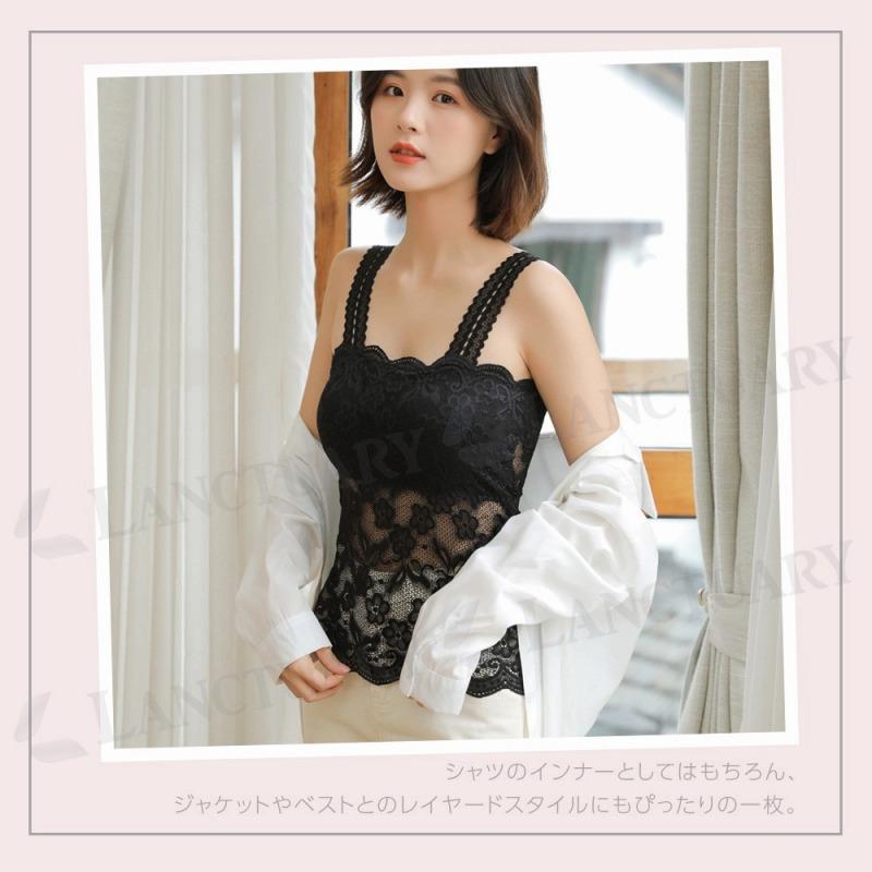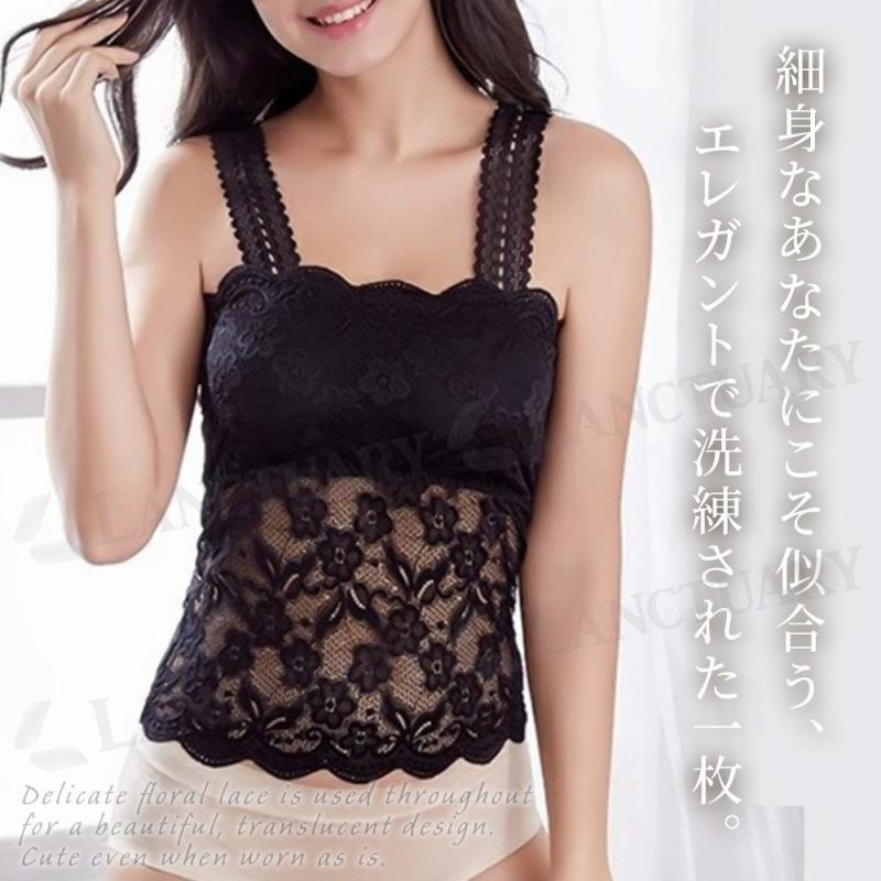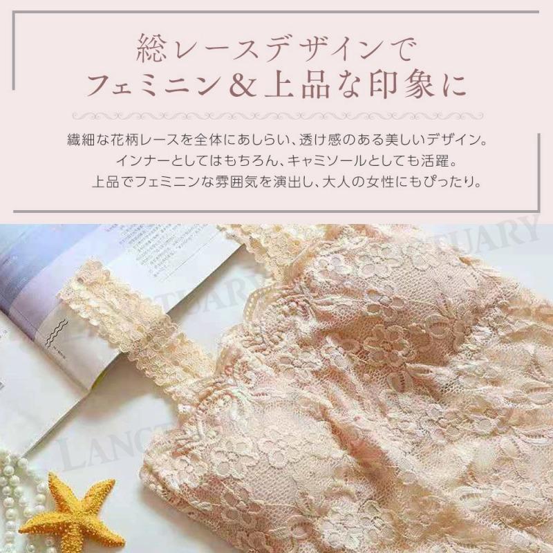 総レース キャミソール 見せキャミ レースタンク タンクトップ ベアトップ インナー Vネック ブラトップ レースキャミ レース ノンワイヤー カップ付 花柄