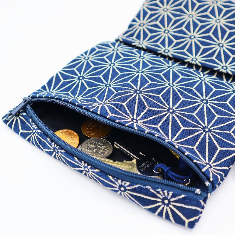 上部にファスナー付のポケットがあり、小銭はもちろんアクセサリーや鍵なども収納できます。