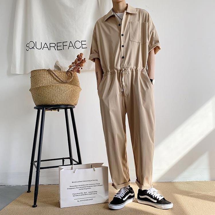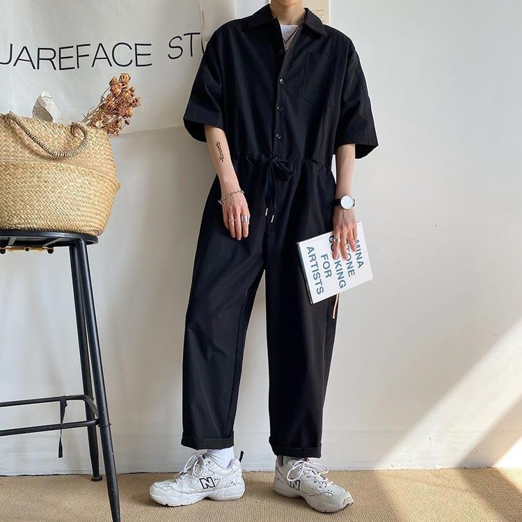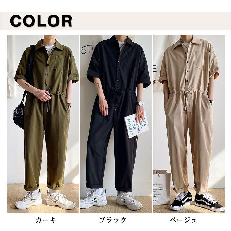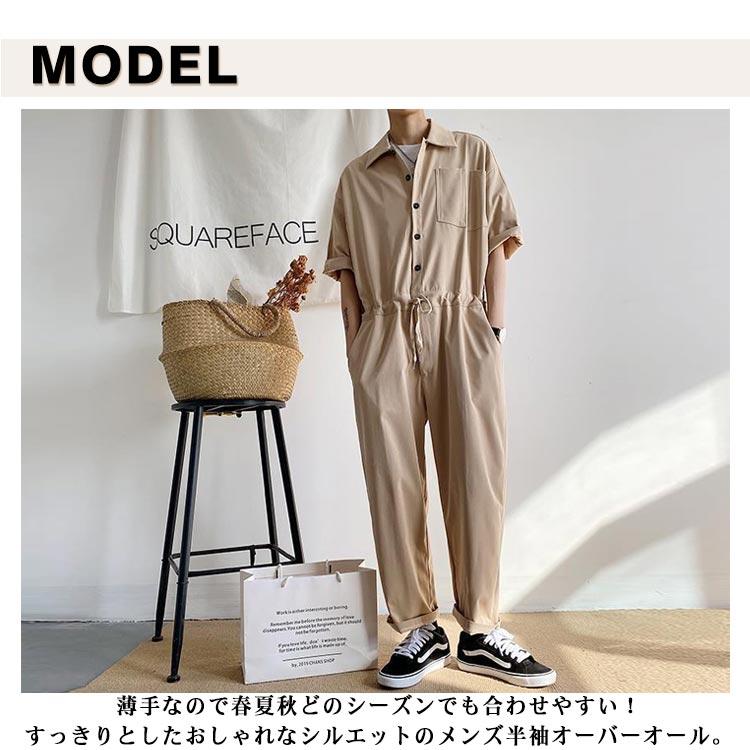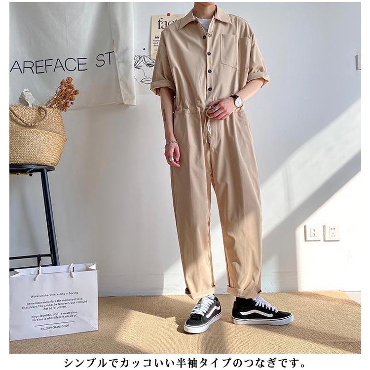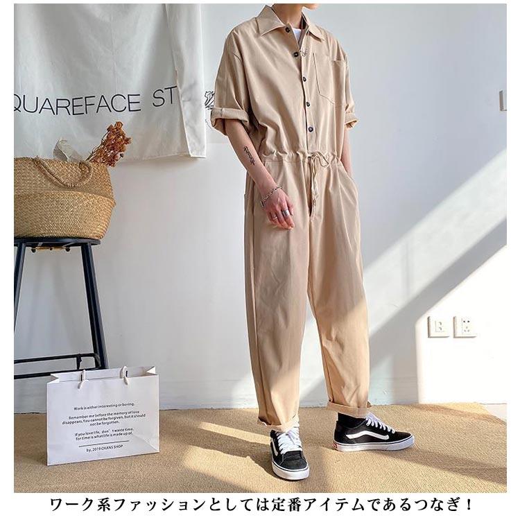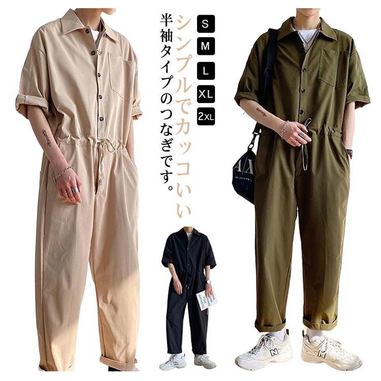 送料無料 つなぎ メンズ おしゃれ オールインワン ビッグシルエット オーバーサイズ カバーオール ワイドパンツ 無地 作業服 半袖ツナギ 作業着 オ