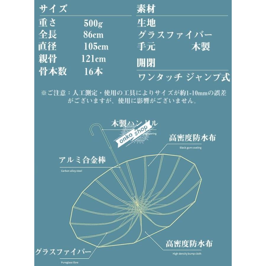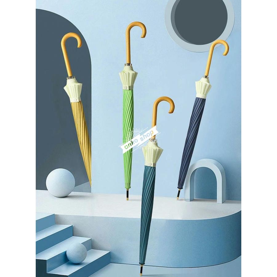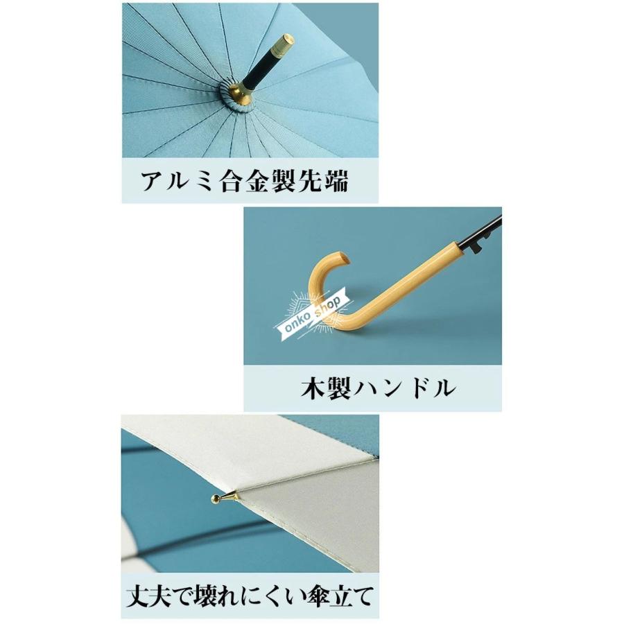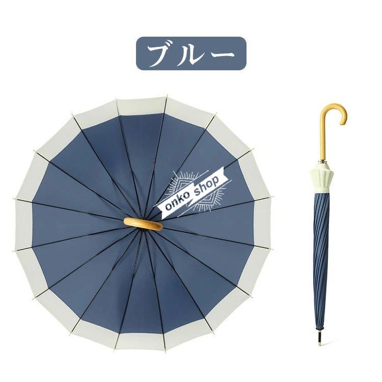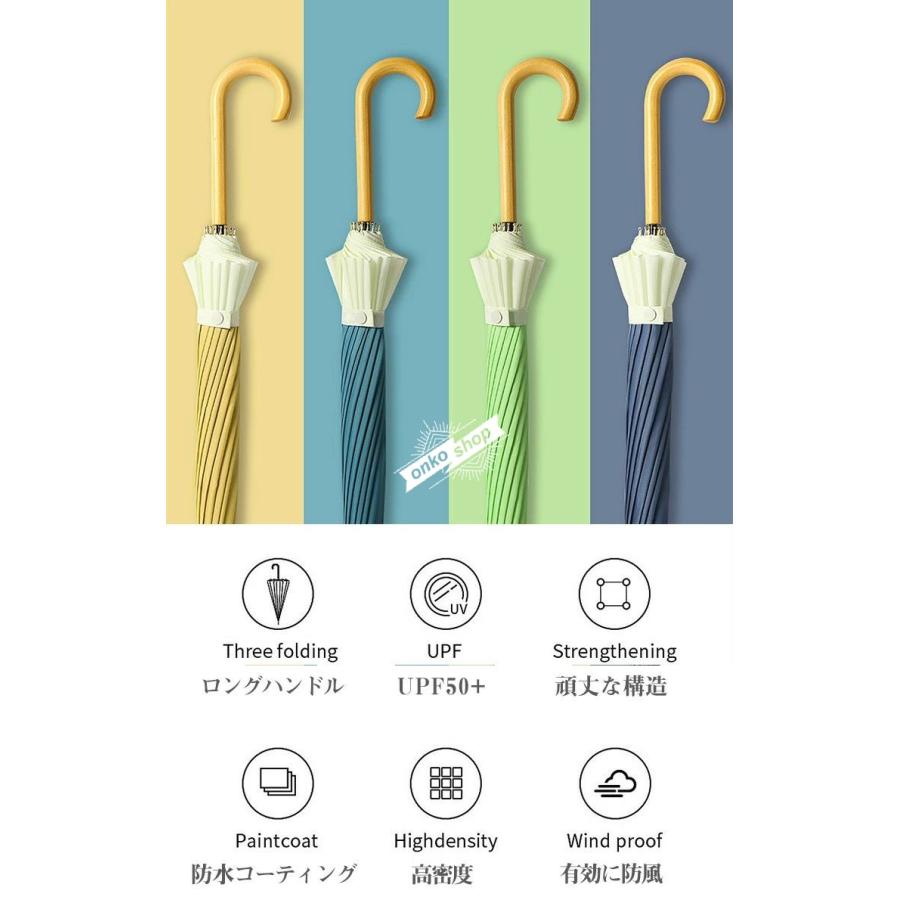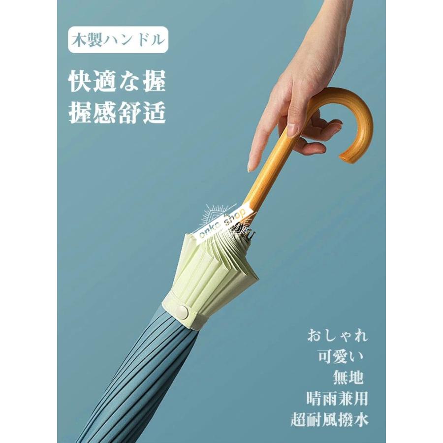 送料無料 長傘 長雨傘 16本骨 ワンタッチ?ジャンプ式 おしゃれ 雨傘 木製ハンドル マルチカラー シンプル 無地 遮光遮熱 日焼け防止 晴雨兼用 耐風構造 超耐