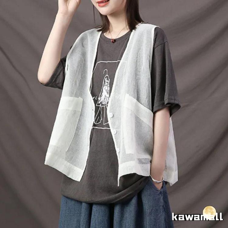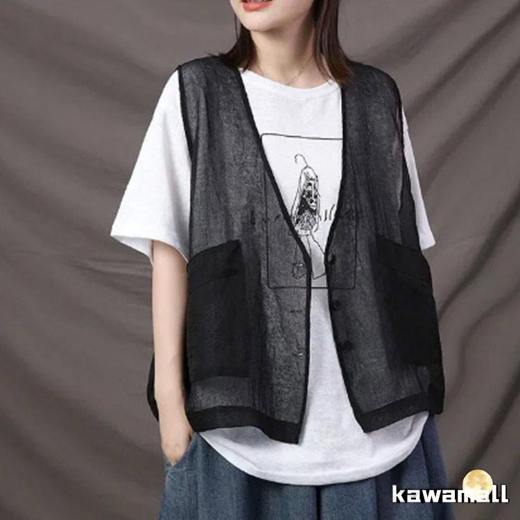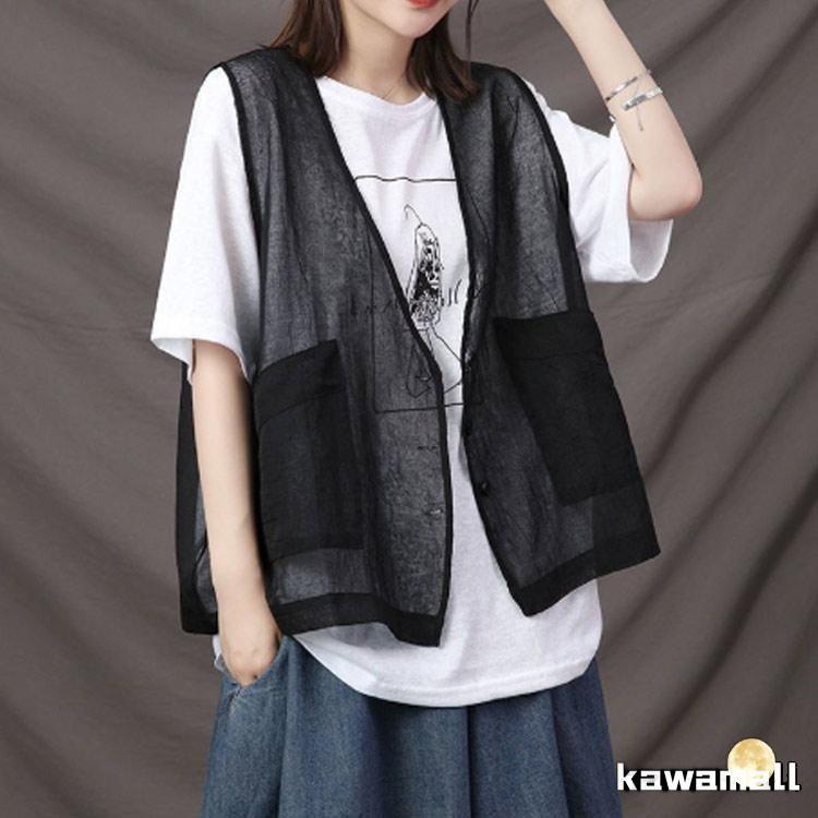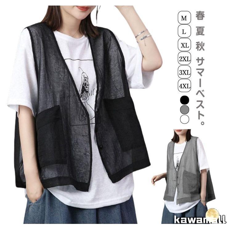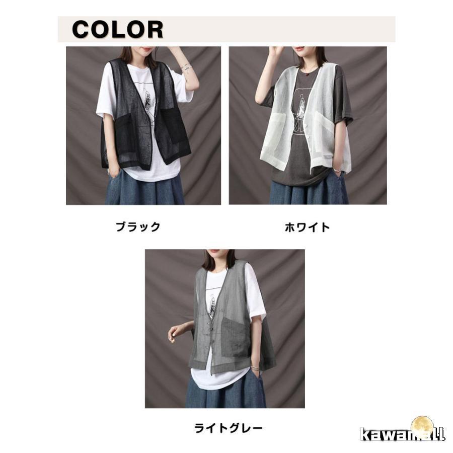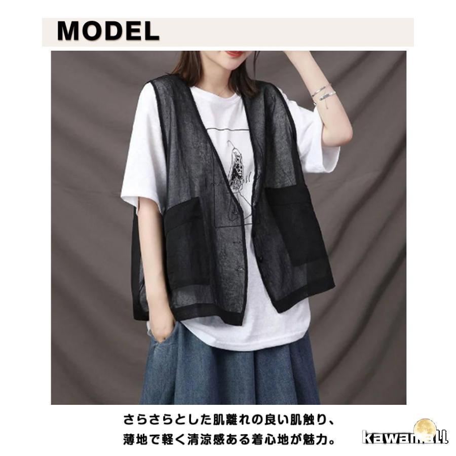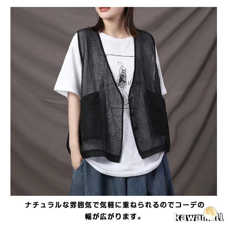 透け ベスト サマーベスト レディース レイヤード 秋 薄手 ジレベスト 前開き ジレ 春 涼しい シアー カーディガン チョッキ 無地 ノー