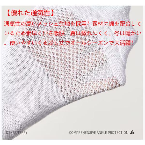?【優れた通気性】?足の甲に通気性の高いメッシュ生地を採用!素材に綿を配合しているため素早く汗を吸収??夏は蒸れにくく、冬は暖かい。??使いやすいくるぶし丈でオールシーズンで大活躍!
