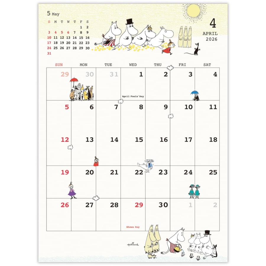 2026年度カレンダー 壁掛け S 二つ折りカレンダー小 ムーミン リトルミイ 845469 日本ホールマーク 令和8年 日曜始まり キャラクター かわいい