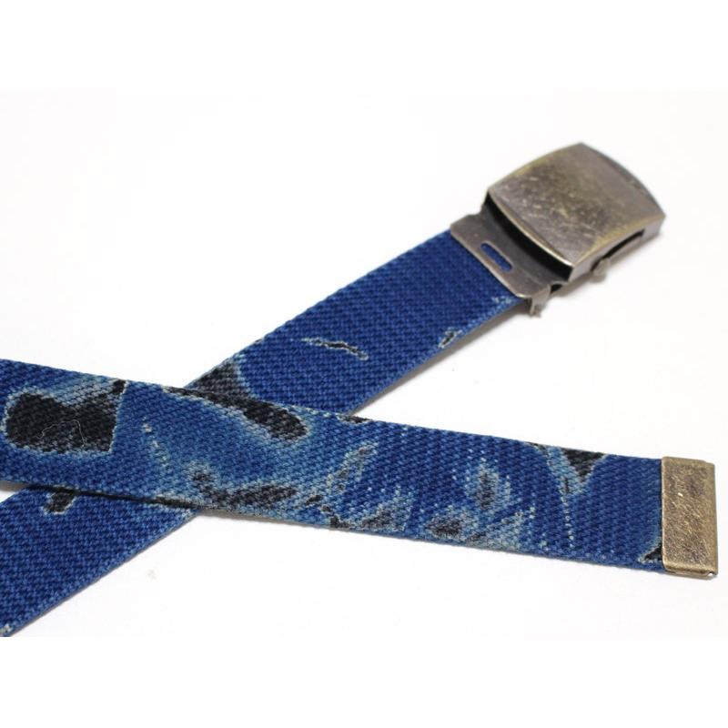 31ミリ 綿 ローラーバックルベルト サイケデリック ブルー アンティークバックル GIベルト ガチャベルト 1梱包3本までメール便対応可 日本製