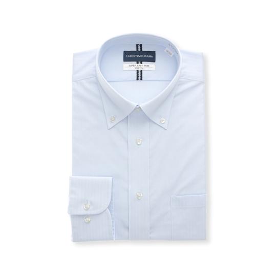 AOYAMA 【洋服の青山】ワイシャツ メンズ 長袖 オールシーズン ブルー 青 ストライプ ボタンダウン スタンダード 形態安定 ストレッチ 伸縮 動きやすい ビジネス